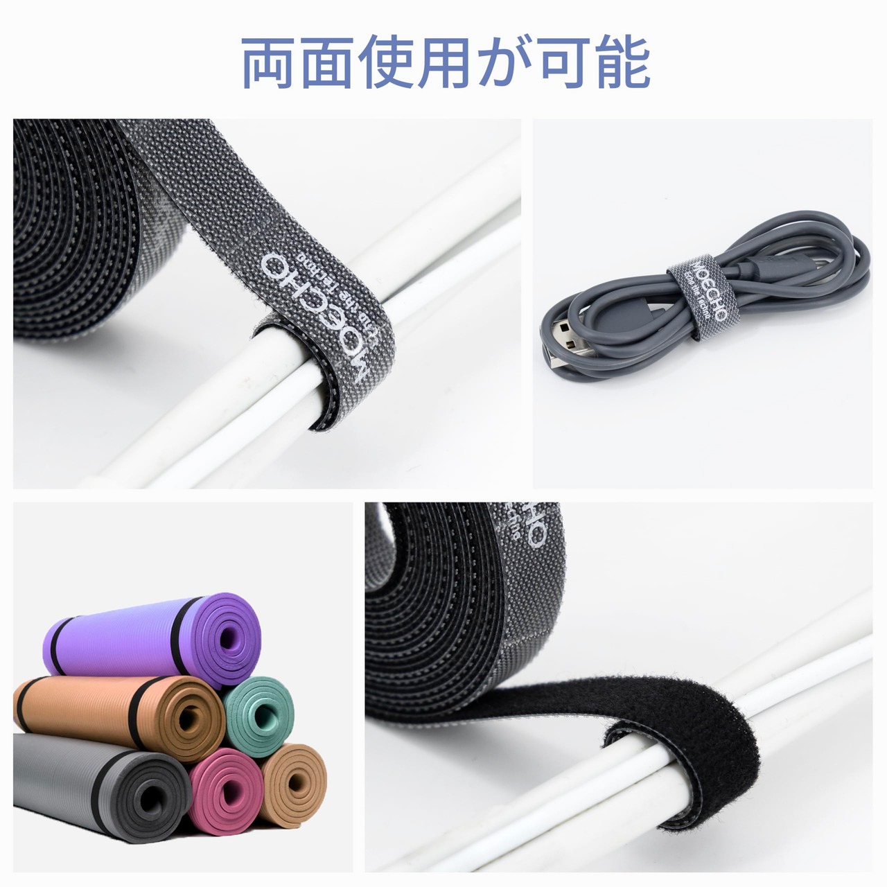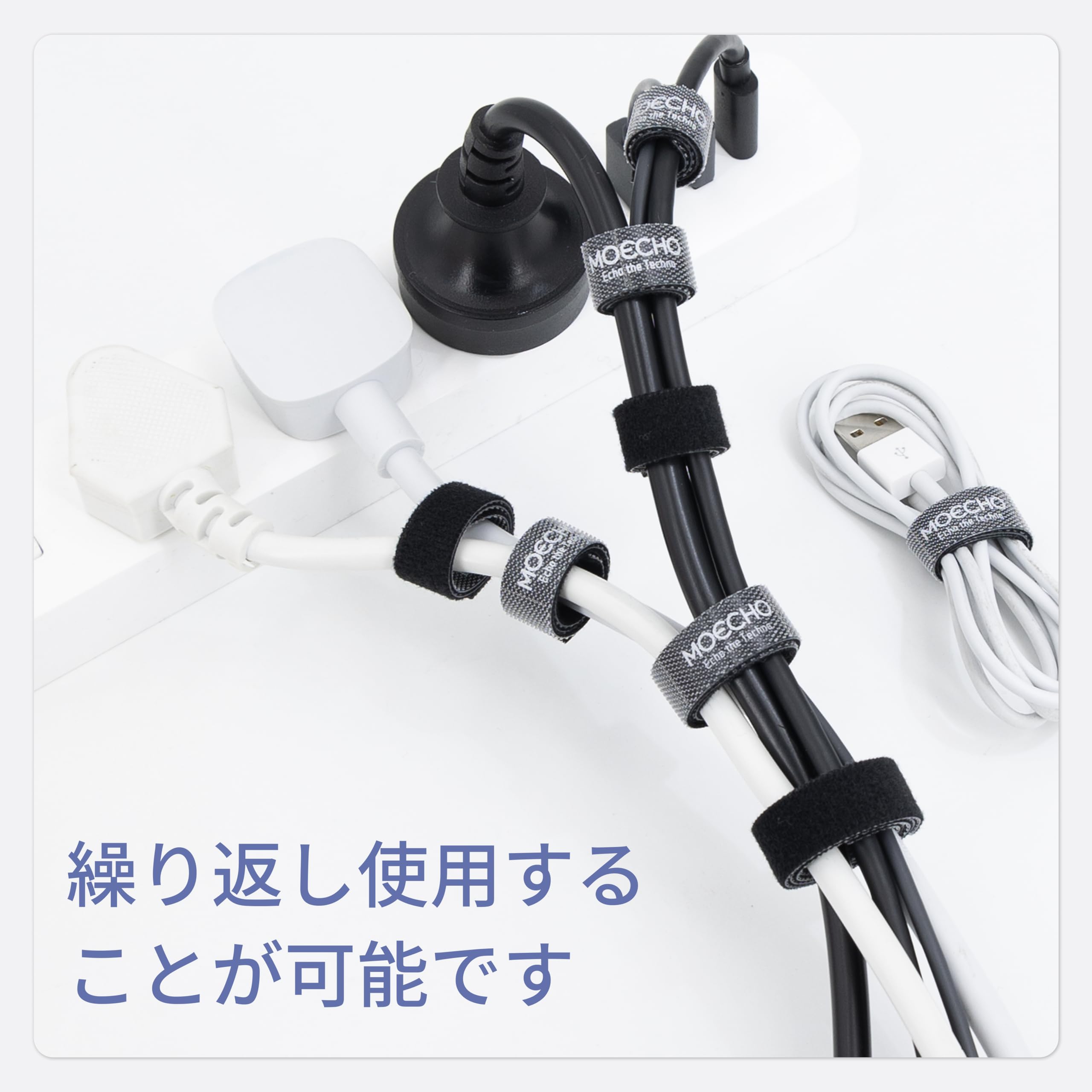 【両面・再利用可能】ケーブルバンドは両面使用可能で、お好みに応じてロゴ面とロゴなし面をお選びいただけます。一度使用したら取り外しても再度利用可能です
