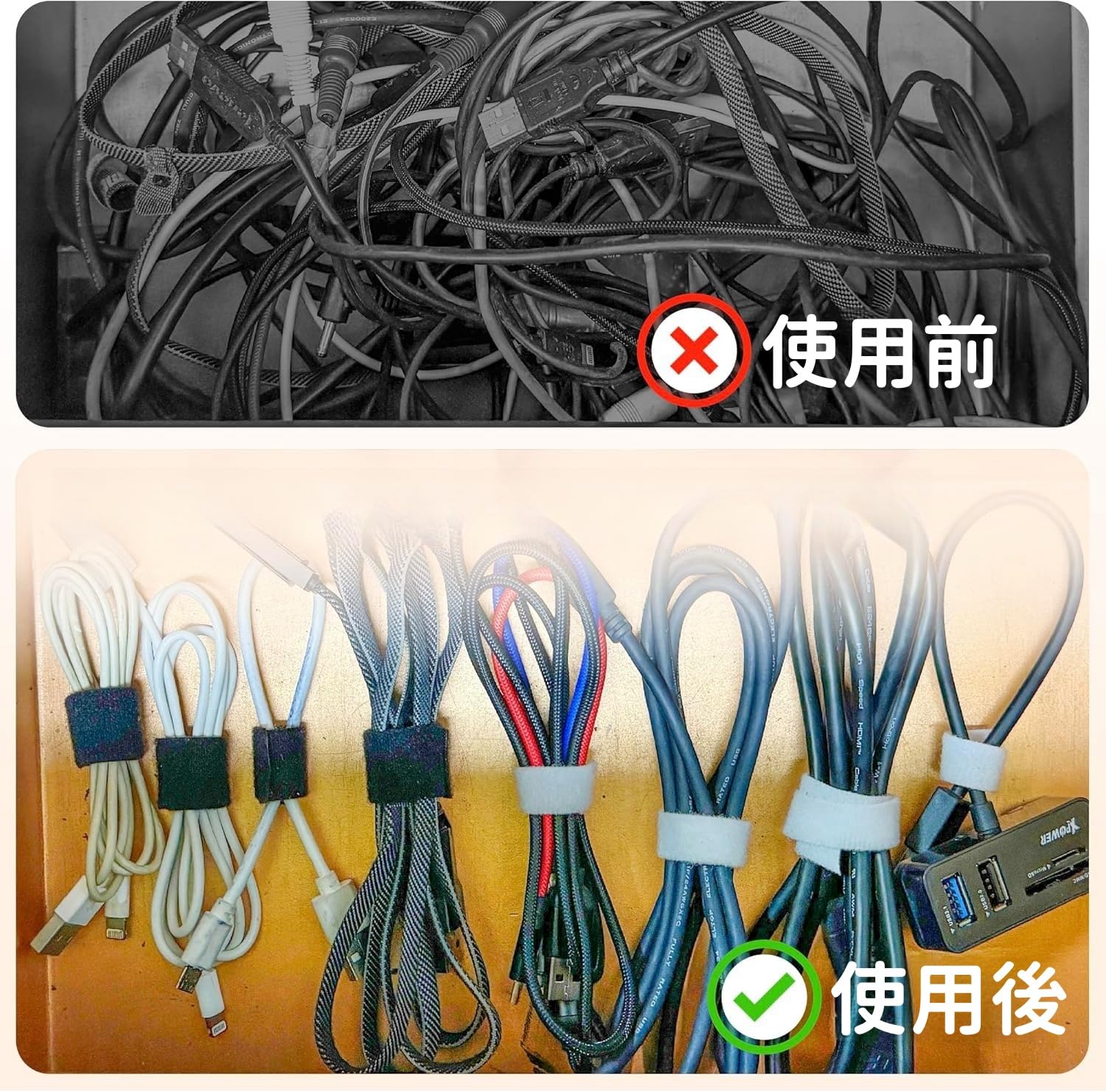 【幅広い用途】パソコンケーブル、ノートPCアダプタ、電気コード、USBケーブル、イヤホンなどの配線を、すっきり結束でき、糸が絡まることを有効に防止して、綺麗な生活空間を作っていただきます。