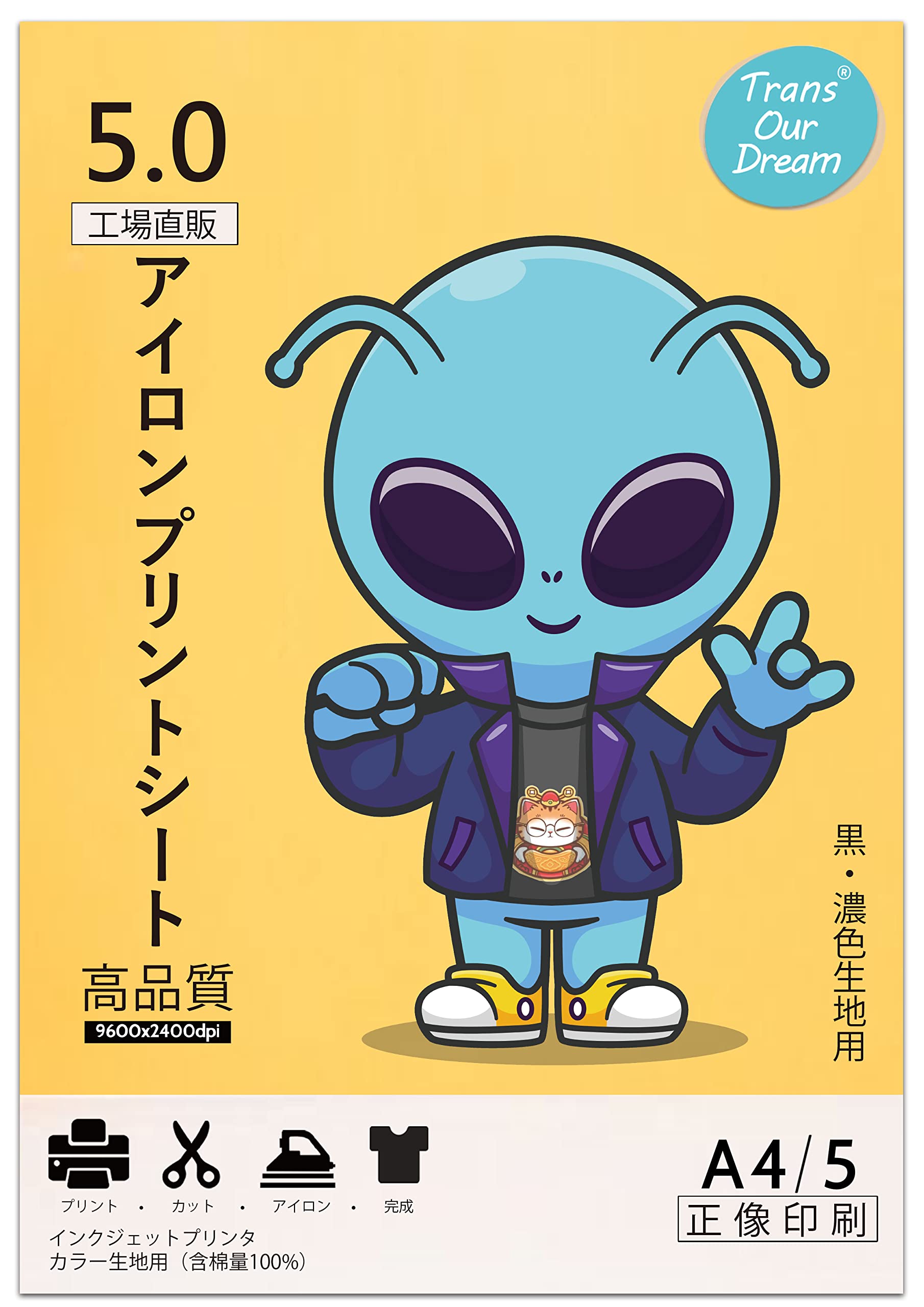【数量限】TransOurDream 真正の転写シート A4 5枚 アイロンプリントシート 転写紙 黒・濃色生地用 転写シール インクジェットプリンタ用 アイロン転写シート アイロンプリント用紙 JP-3-5-5 | GIGATERA