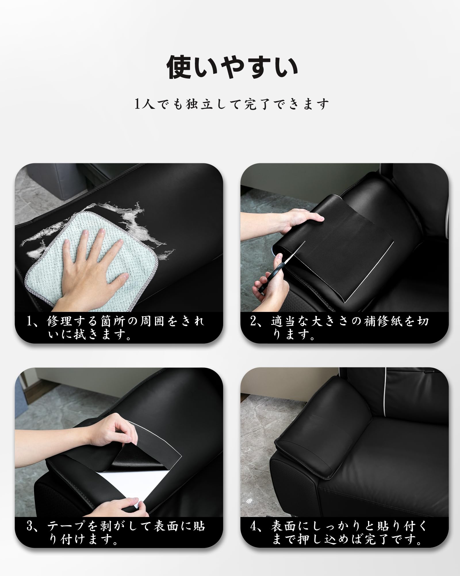 【人気】YSAGi 合皮 補修シート 大判 レザー補修シート 合皮補修パッチ 合皮補修テープ ソファー 家具補修 車の座席用 シートパッチ DIY 初心者に応用 (40*150CM ブラック) | GIGATERA