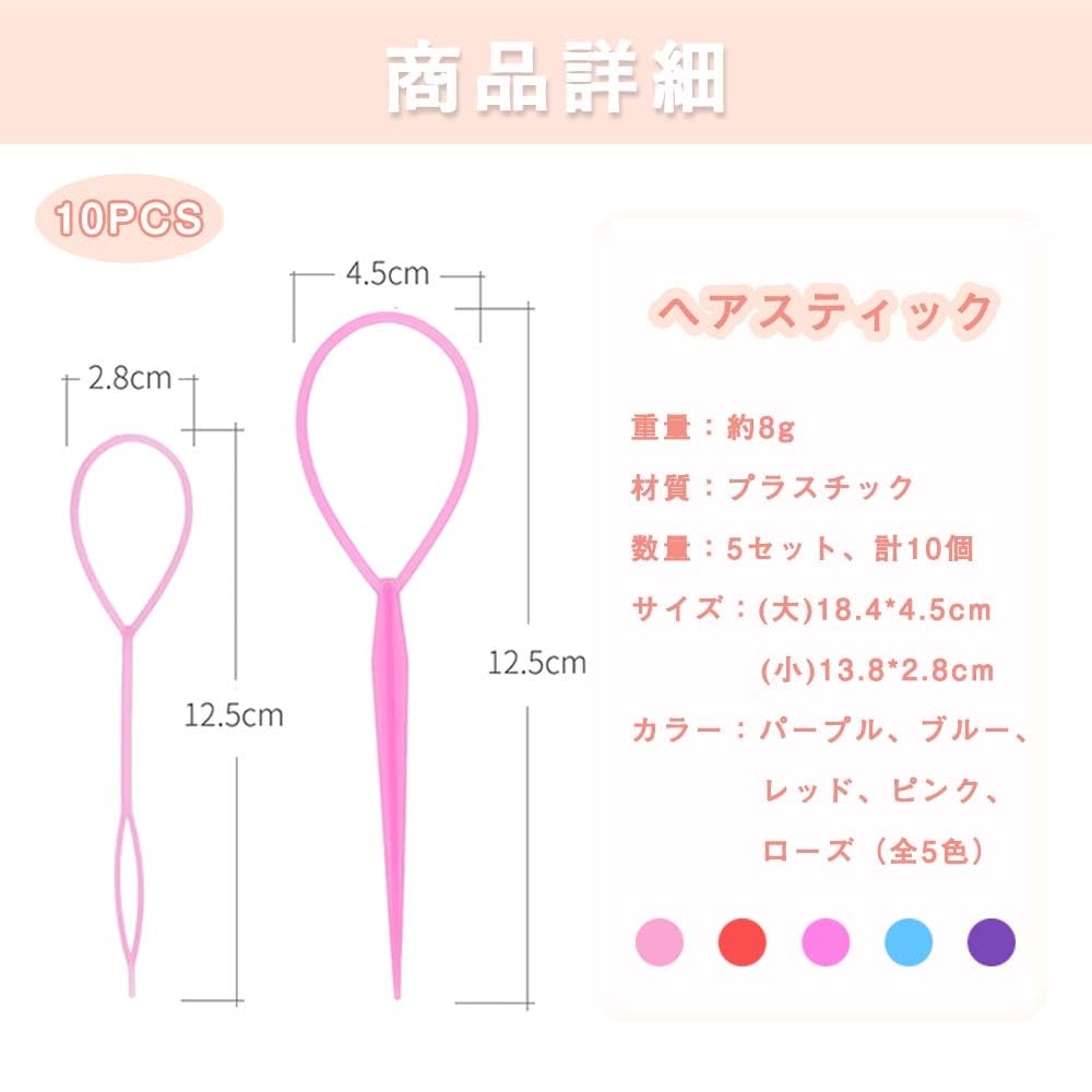 スティック アレンジスティック ヘアアレンジスティック くるりんぱ 10セット ヘアー アレンジ スティック ヘアスタイリングツール スティック ヘアデザイン ヘアスタイリングツール 多機能ヘアスティック あほげ直しスティック 髪造形 多機能 プロ 初心者 サロン 美容院 家庭用 業務用 簡単スタイリングツール 大小 2タイプ (5色計5セット)