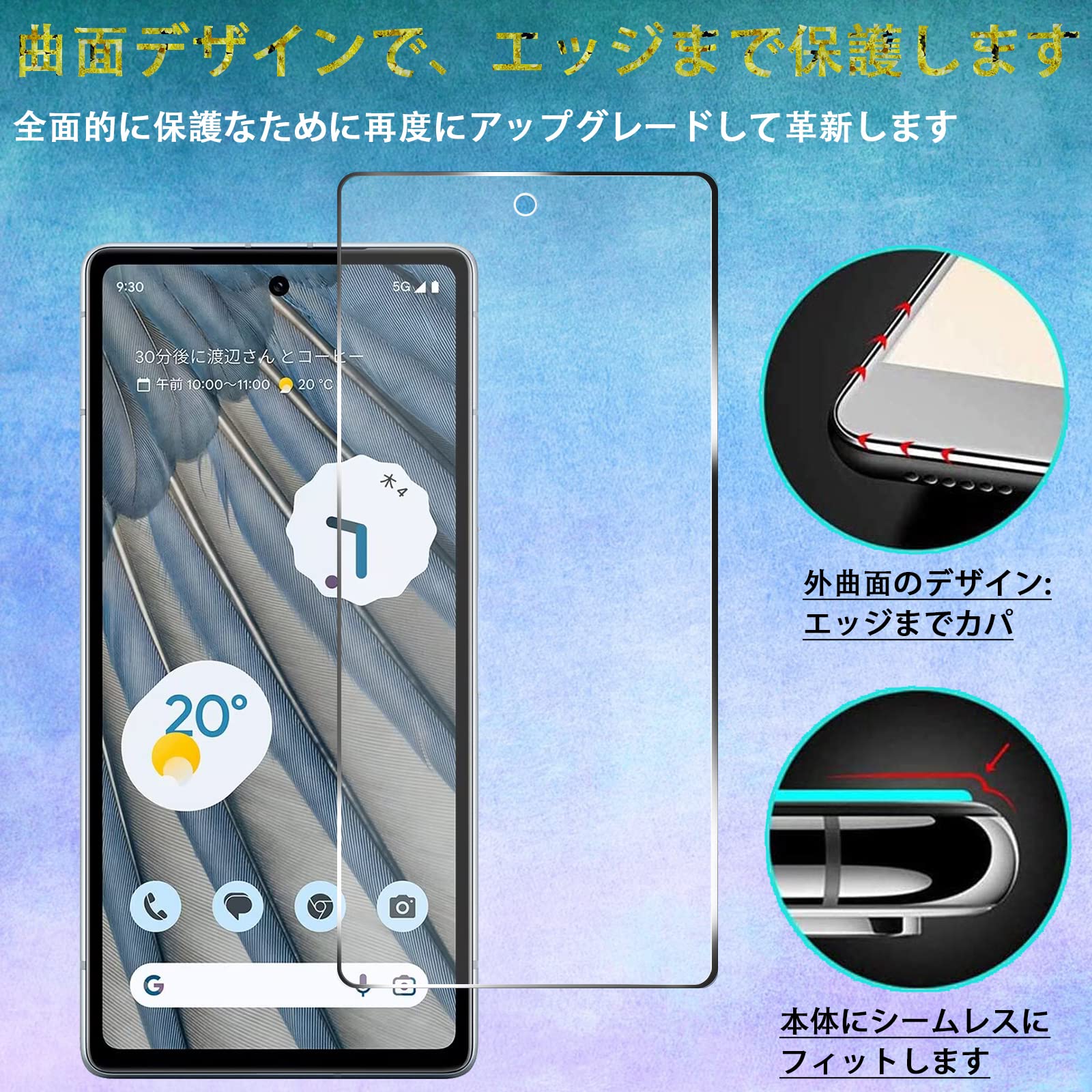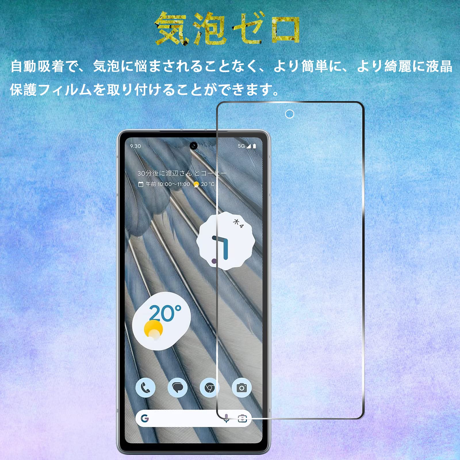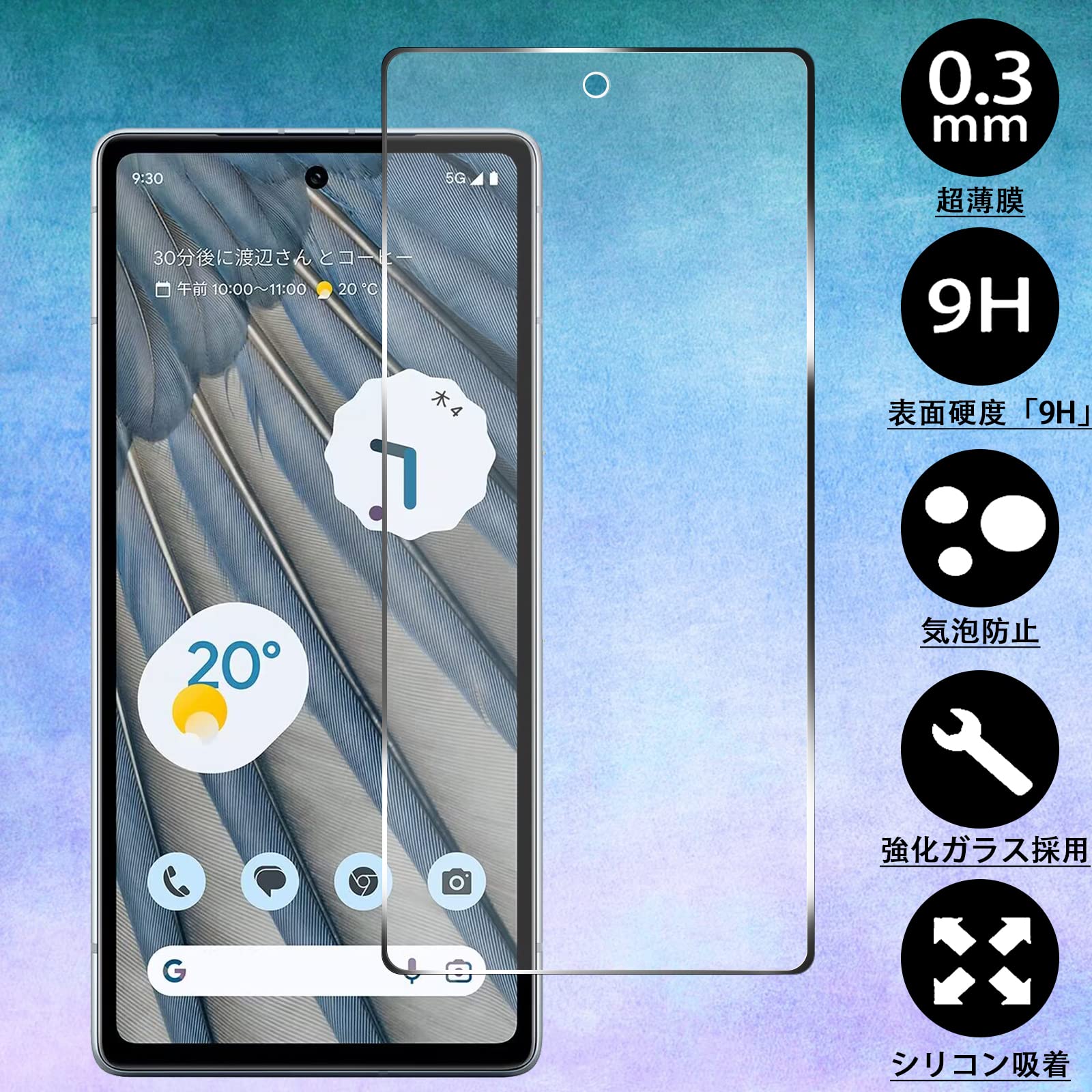 【適用機種】:対応 Google Pixel 7A 5G 用のガラスフィルム。耐久性の高い防汚フィルムには特殊コーティングが施されており、指紋や汚れがつきにくい。超薄保護フィルムの明瞭な高透過率で、自然に見えます。