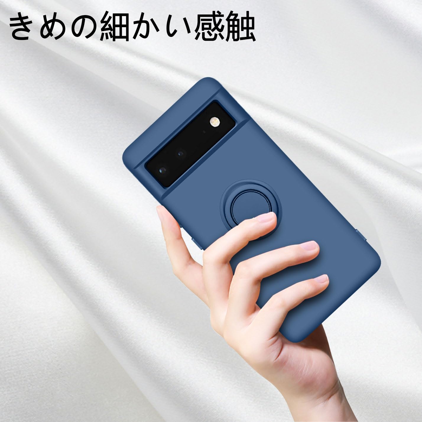 Google Pixel6 ケース リング付き シリコン 耐衝撃 グーグル ピクセル 6 リング カバー 液体シリコーン スマホケース 360°回転 スタンド機能 車載ホルダー ストラップホール付き 滑り止め 落下防止(ブルー)