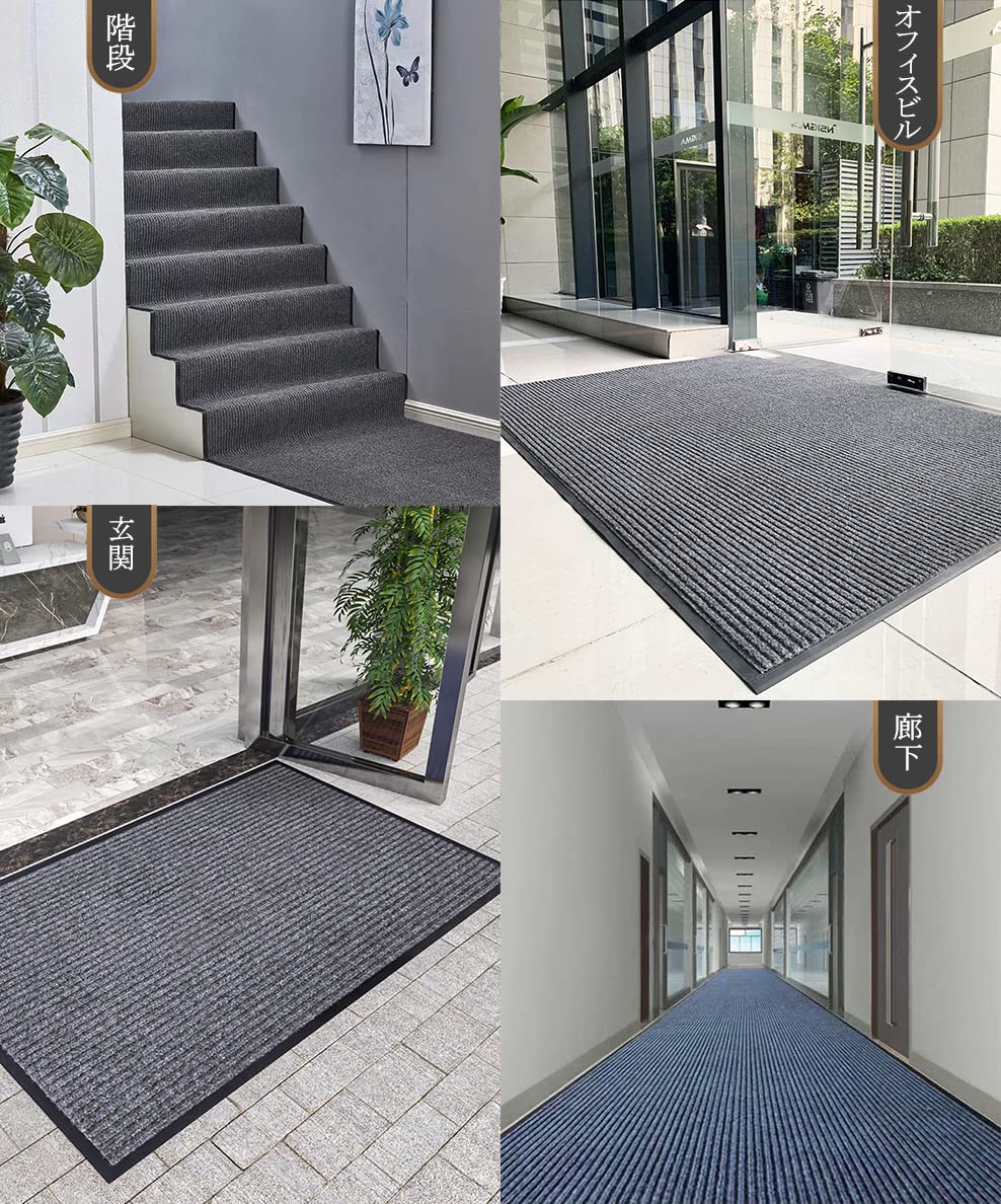 【適用範囲が広い】多用途マットです!ドアマット、階段マット、廊下マット、 玄関マット、キッチンマットなどのインテリアマット等、様々な使い道でご利用いただけます。飲食店や美容院、企業、オフィス、会社、ビル、学校、幼稚園、保育園、店舗、病院、公共施設、レジャー施設といった店舗など、業務用として最適です