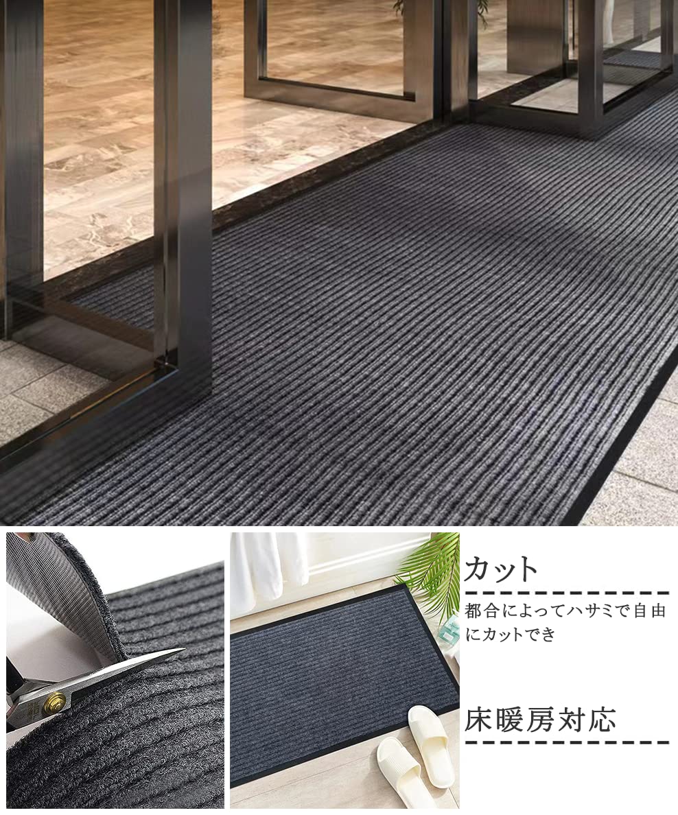 [Bcrio]玄関マット 屋外 大判 室内 滑り止め 業務用 家庭用 吸水 泥落とし エントランスマット オフィス お店(グレー60*90)