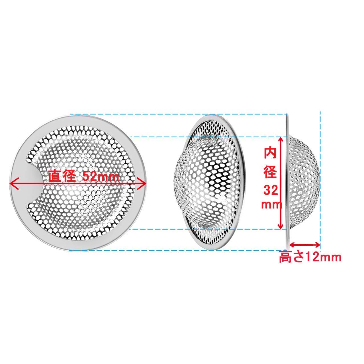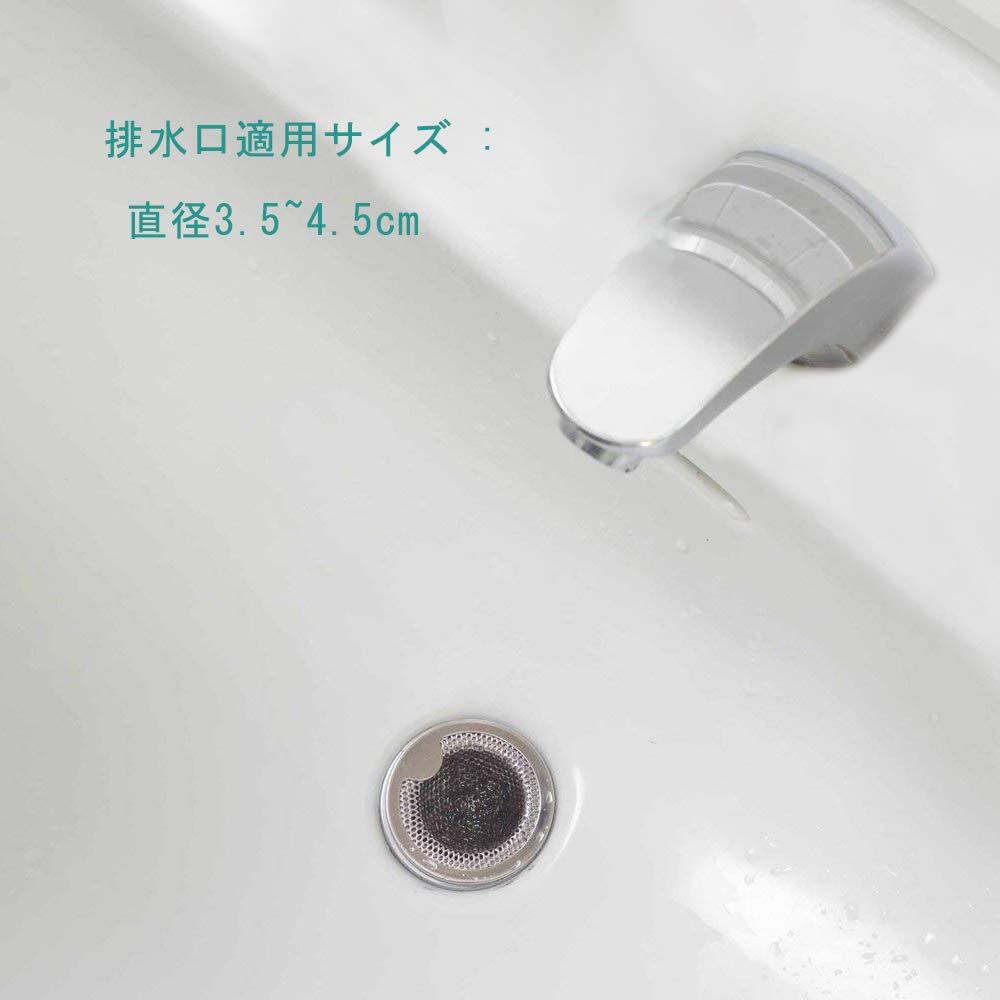 【排水口 ゴミ受けのサイズ】洗面台 排水口の内径:3.2cm、 外径:52cm、高さ:1.2cm 、適用口径:3.5~4.5cm 、効率のはいすいこう ゴミ受けは液体をシームレスに下水道に流入させ、同時に髪の毛を洗面台 排水口に流すのを止めることもできます。