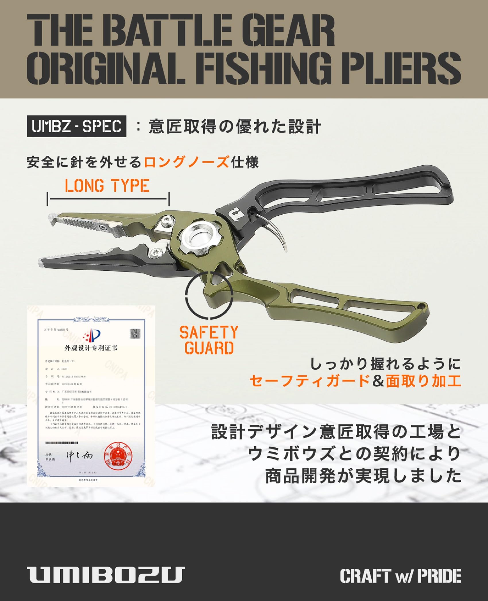 Umibozu(ウミボウズ) フィッシングプライヤー 釣り 国内 針外し 防錆 軽量 強度 ラインカッター