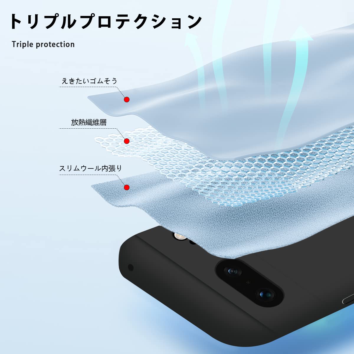 【カメラレンズ保護】ケースカメラ部分にはカメラレンズより0.5mm高く、カメラレンズの周りを保護し、レンズの傷つきを防止できます。