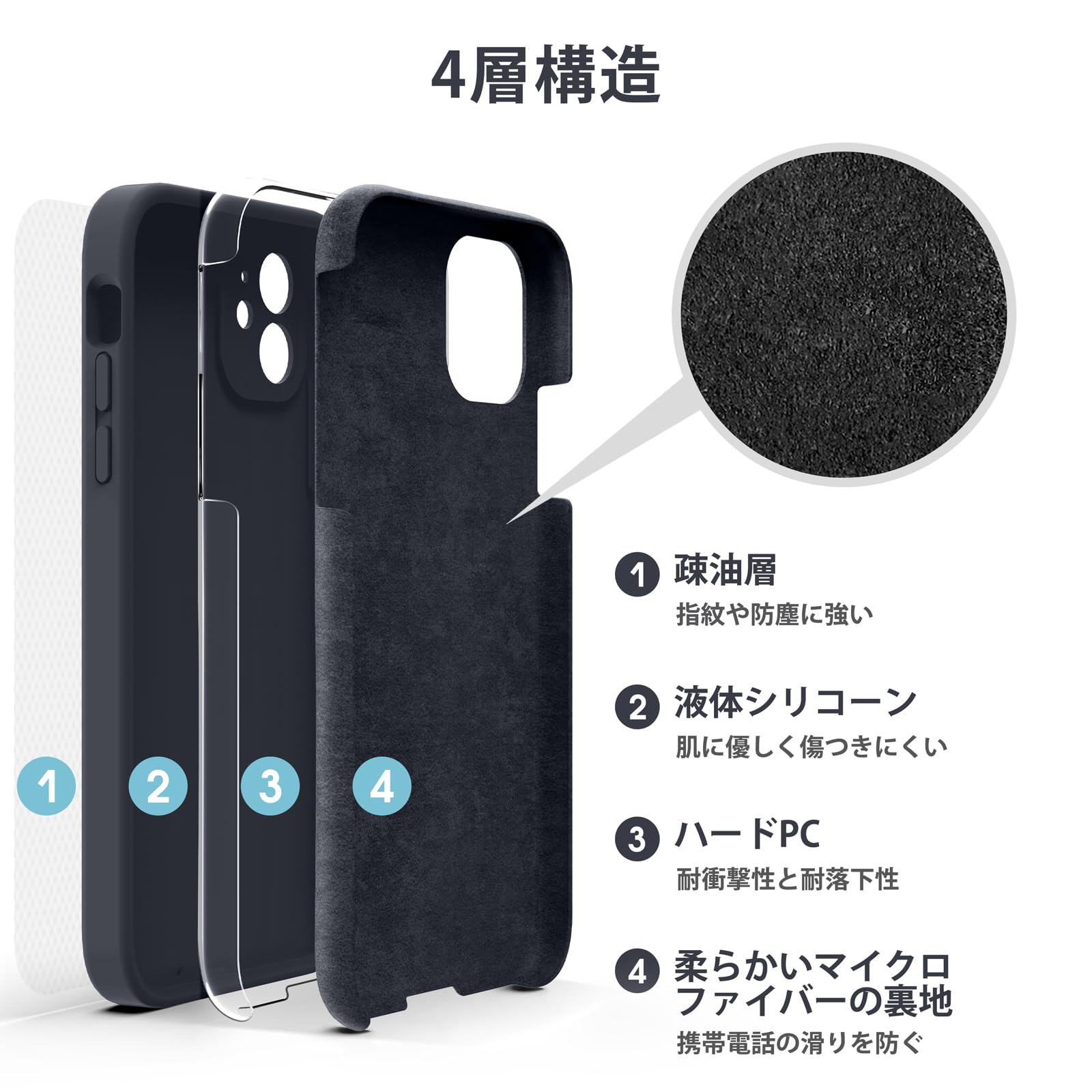 【耐衝撃・耐落下・傷防止】iPhone 11 液状シリコンケース、4層プロセス【液状シリコンケース】【硬質PCボード】【マイクロファイバーパッド】【撥油層】で携帯電話を摩耗や損傷から守ります。