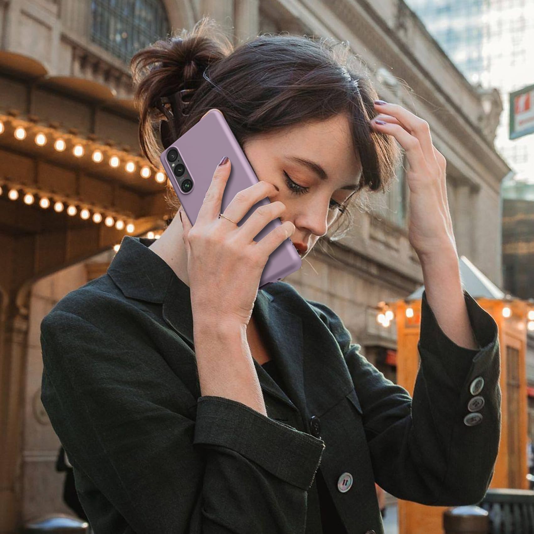 PNEWQNE AQUOS Sense7 用ケース シリコン 柔軟TPU 保護ケース 耐衝撃 薄型 すり傷防止 SH-53C SHG10 ケース レンズ保護 軽量 脱着簡単 アクオス センス7 ケース 落下防止 スクラッチ防止 滑り防止 ストラップホール付き 一体型 携帯カバー 紫 WY94-08