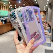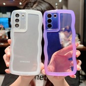 QLTYPRI Galaxy A54 5G ケース クリア TPU カバー ウェーブ おしゃれ 韓国 可愛い 透明 薄型 軽量 耐衝撃 滑り止め (SC-53D / SCG21) スマホケース ワイヤレス充電対応 ストラップホール付き ギャラクシーA54 ケース 6.4インチ 対応 - パープル