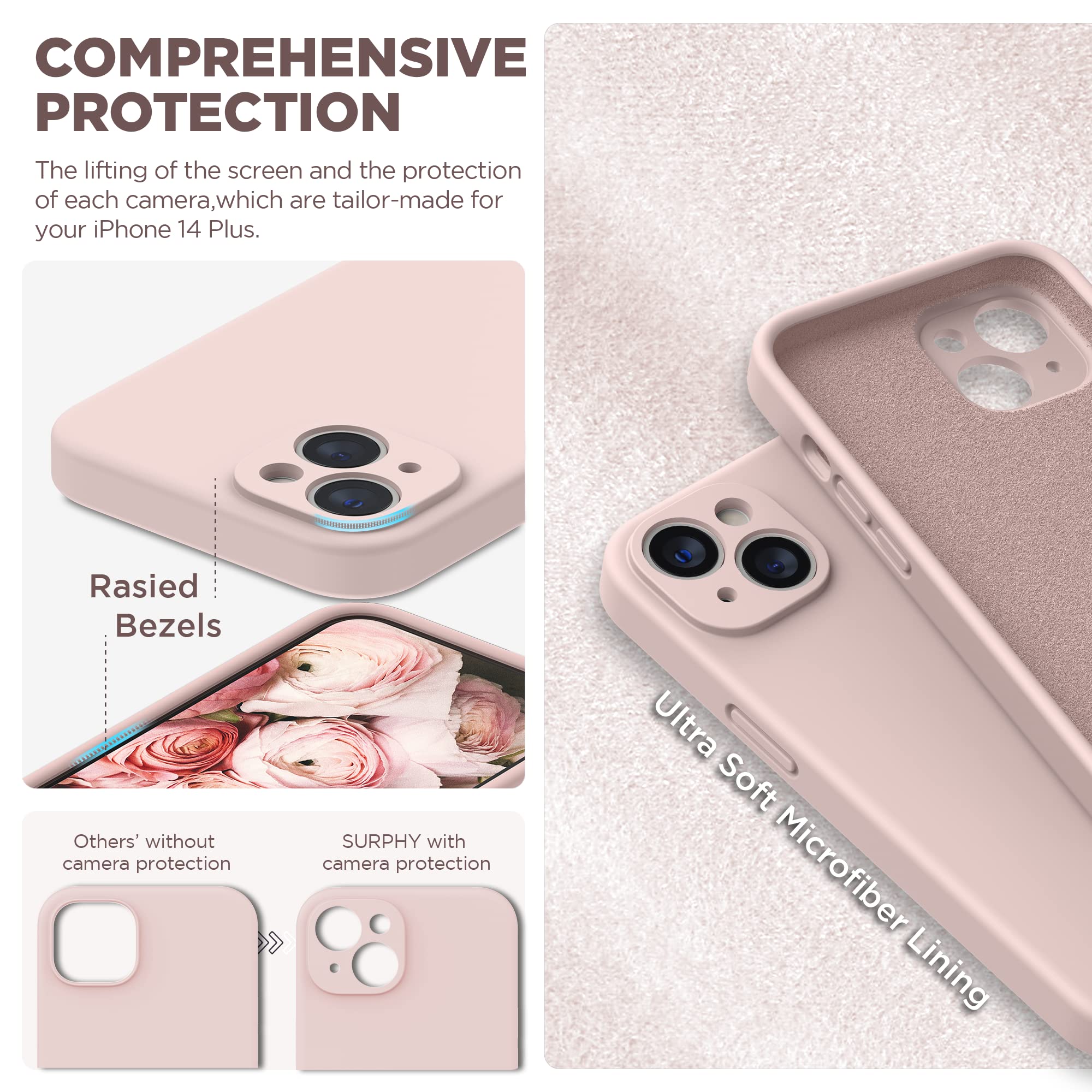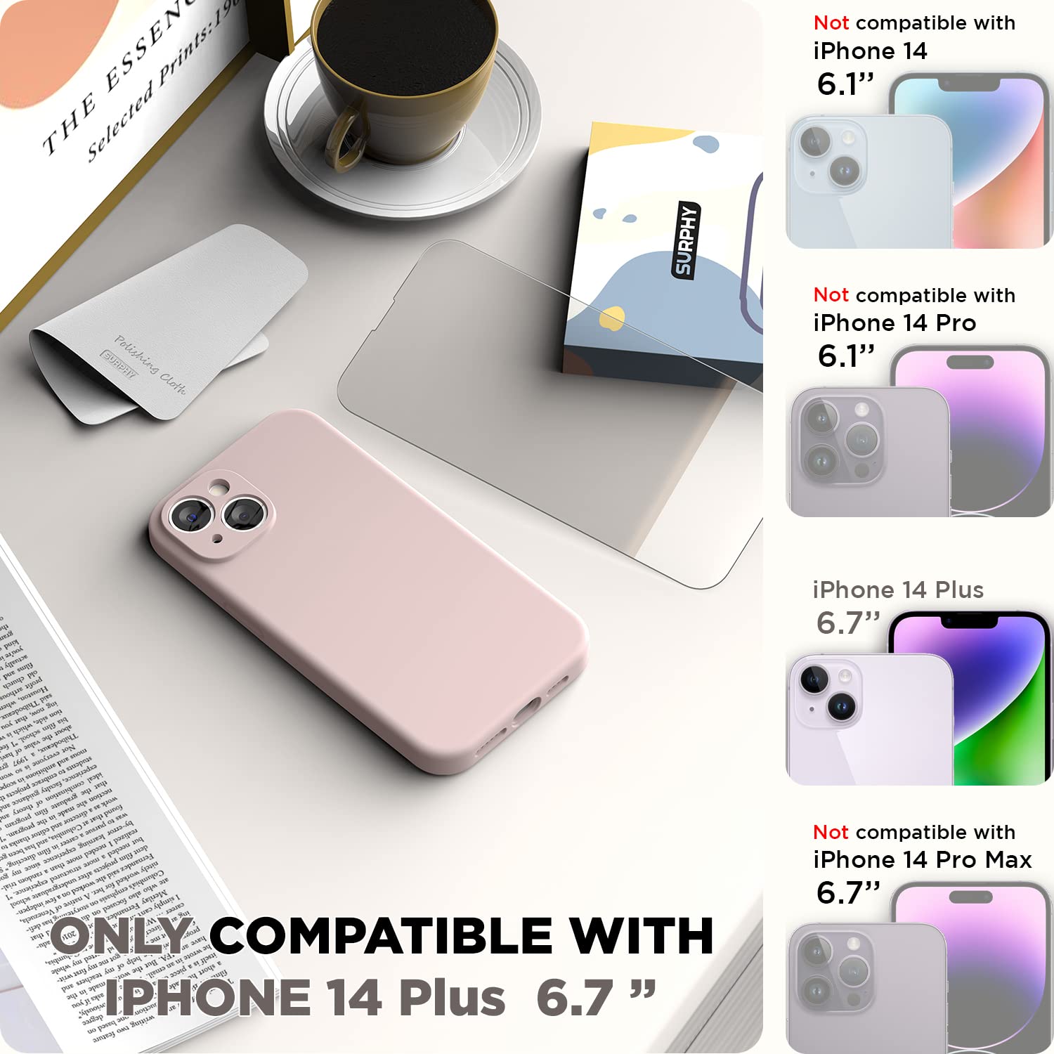 SURPHY iPhone14 plusケース シリコン,フィルム付き 6.7インチ対応(2022) iPhone14 プラスシリコンケース (レンズの全面保護) 耐衝撃 超軽量 指紋防止 全面保護 iPhone14 plusソフトカバー (ピンク)