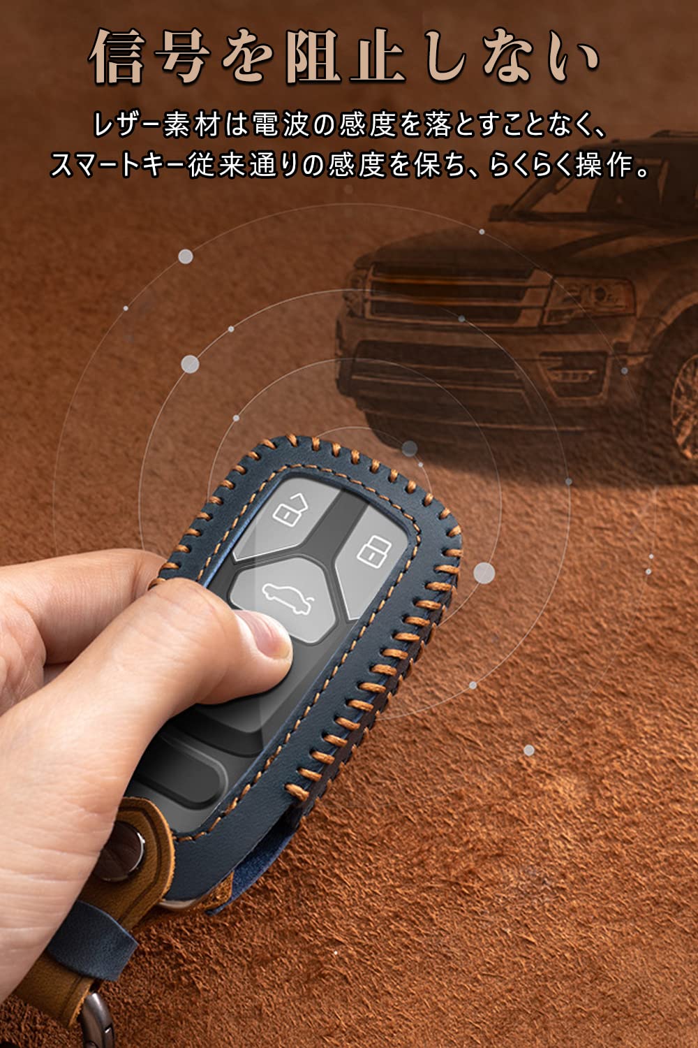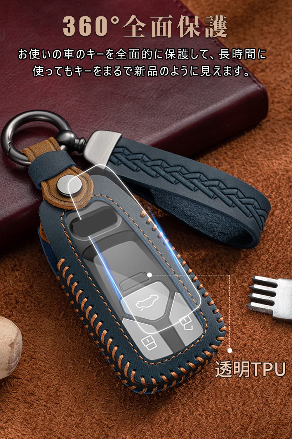 キーケース アウディ用 スマートキーケース キーカバー 3ボタン 本革 レザー アウディ専用設計 Audi A3 A6 A6L A7 S7 RS7 A8 A8L Q8 Q7 Q5 等に適用 キーホルダー