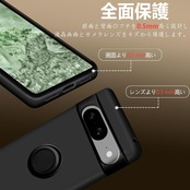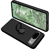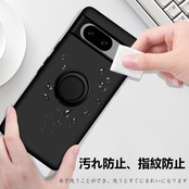 Google Pixel8 ケース リング付き シリコン 耐衝撃 グーグル ピクセル 8 リング カバー 液体シリコーン スマホケース 360°回転 スタンド機能 車載ホルダー ストラップホール付き 滑り止め 落下防止(ブラック)