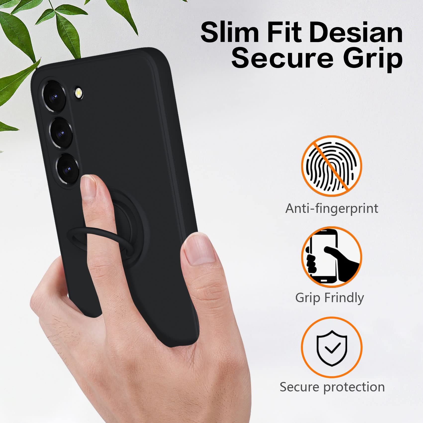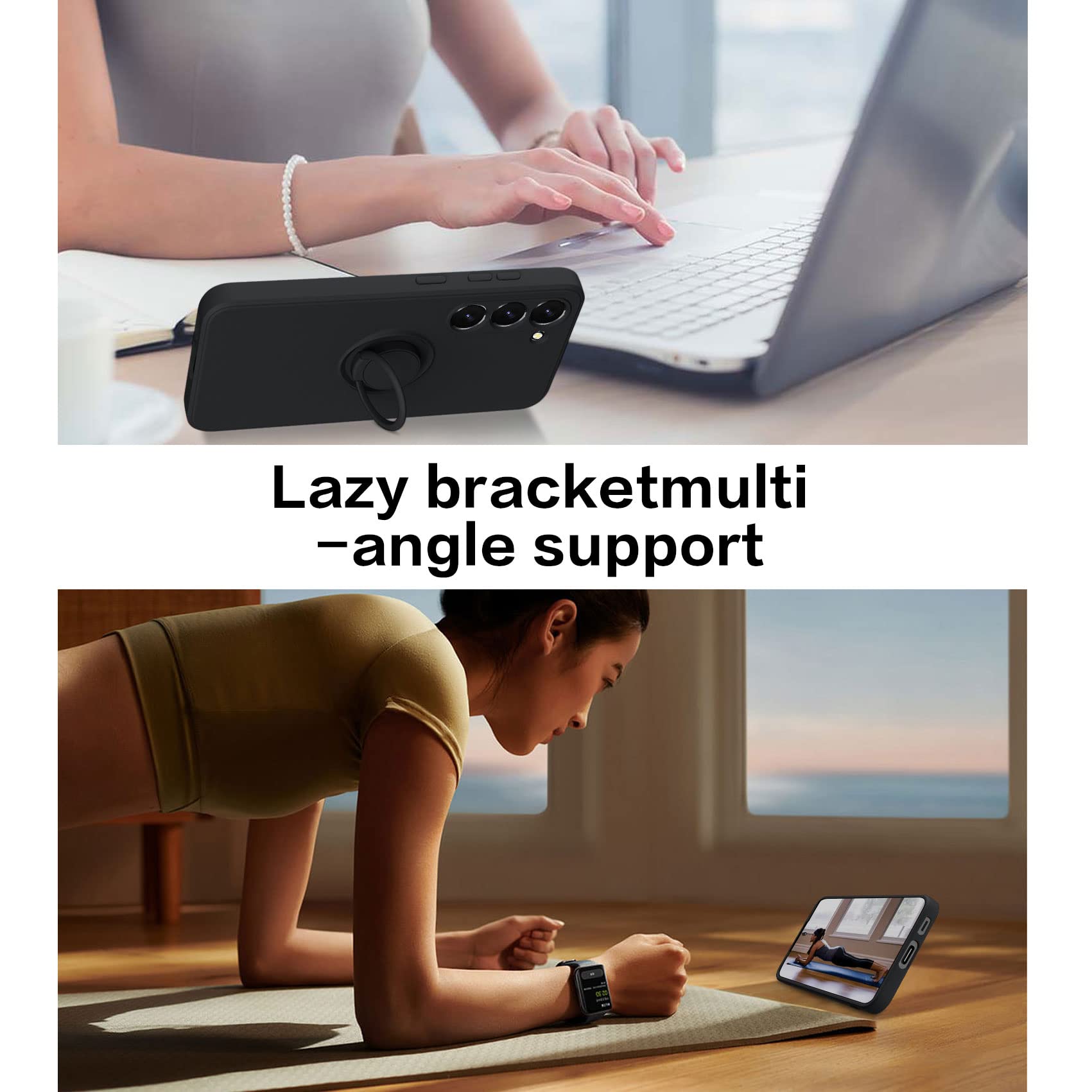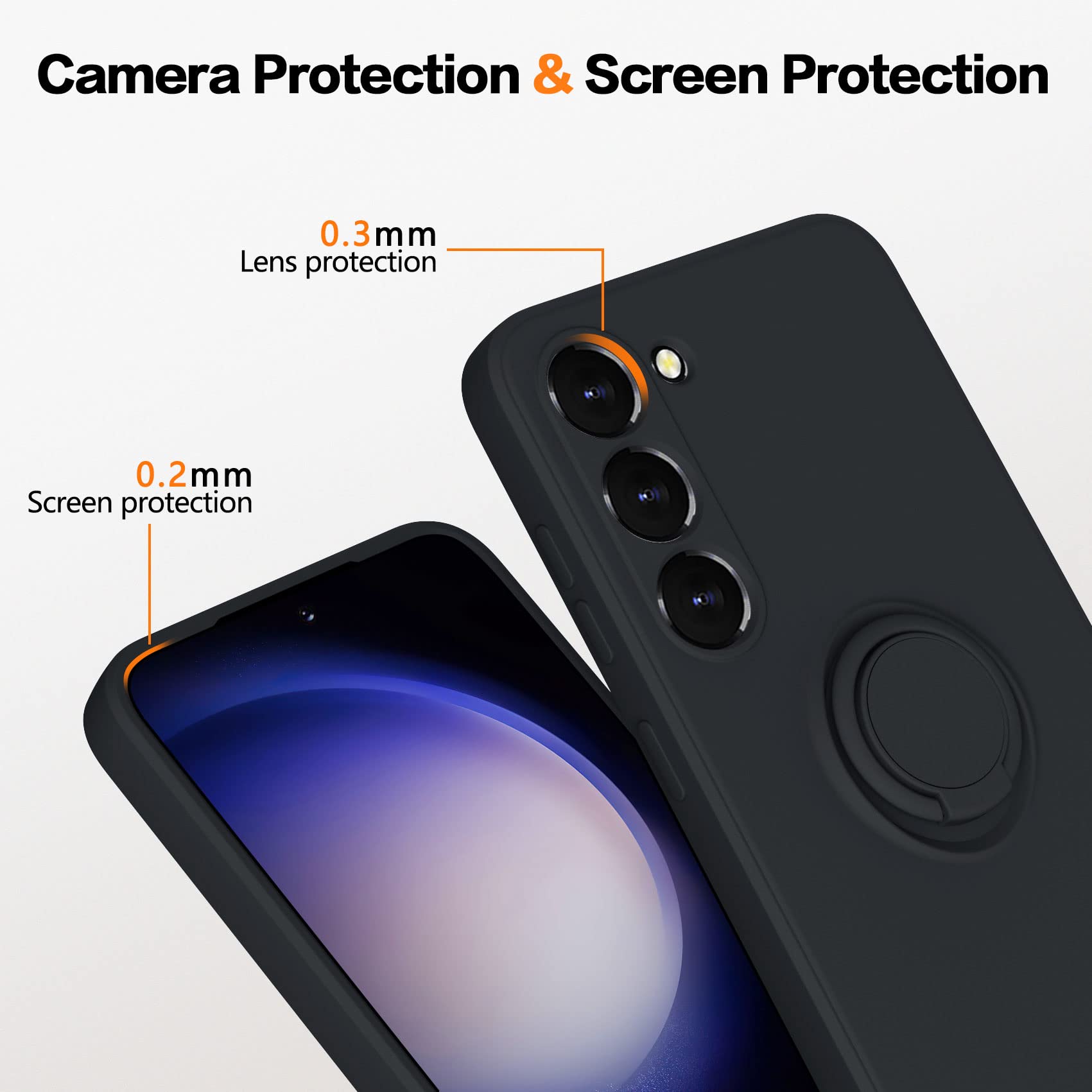 Galaxy A53 5G ケース リング付き SC-53C SCG15ソフトシリコンケース 全面保護 傷付き防止 tpu 一体型 車載ホルダー対応 スタンド機能 サムスン ギャラクシー a53 5g ケース シンプル 人気 携帯カバー 黒 WY90-19