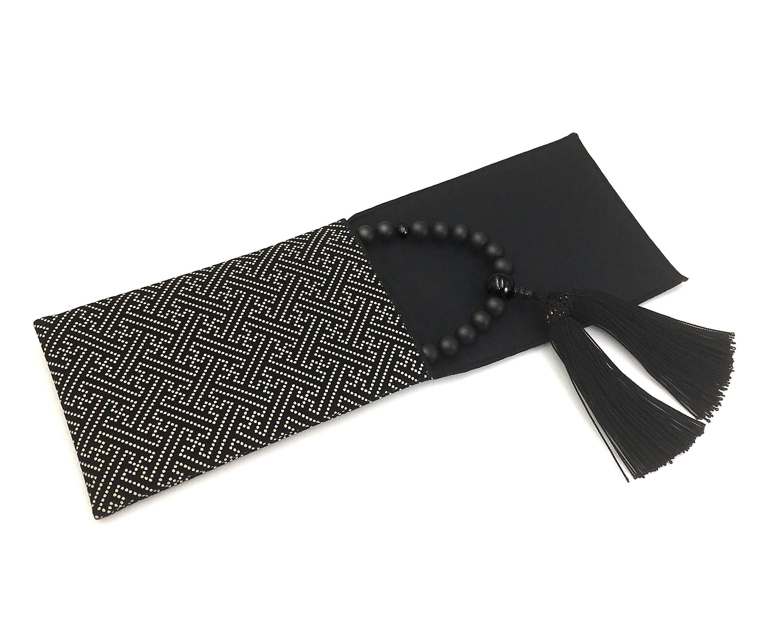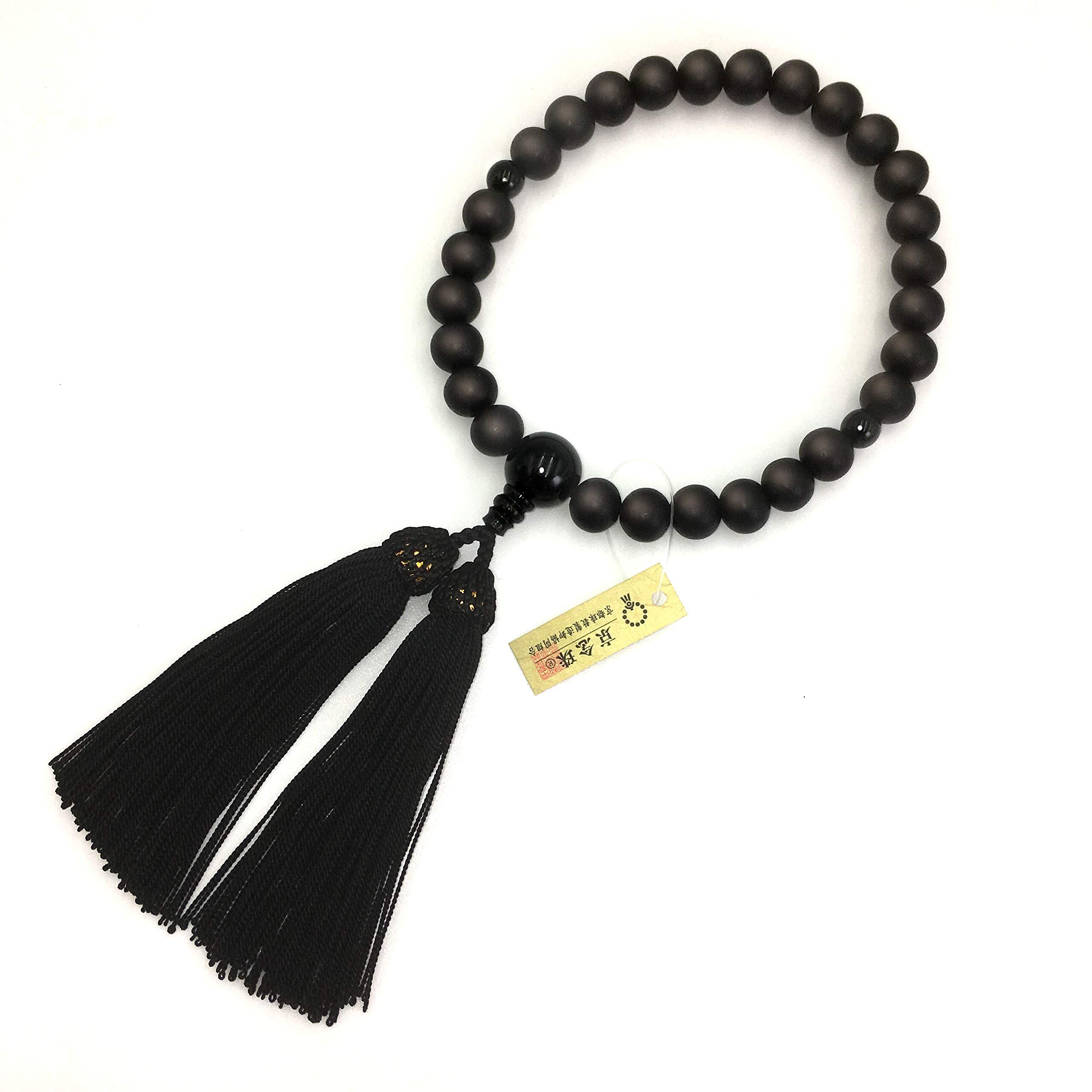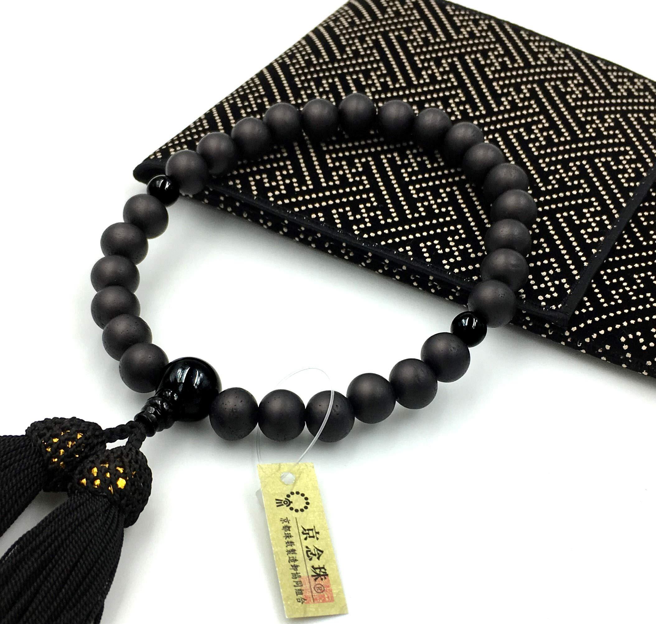 漆ぷろだくと 国産 数珠 【高級 印伝調 数珠袋付き】男性用 黒檀 艶消 全ての宗派でお使い頂けます 【京都珠数製造卸協同組合タグ付き】