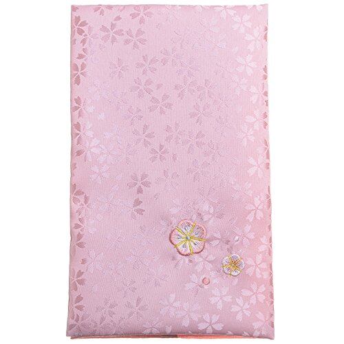 発色のよい小花柄の美しい綸子に、慶事用ピンクには梅、弔事用の紫には桔梗の刺繍をあしらいました。収納保管に便利な箱付きです。