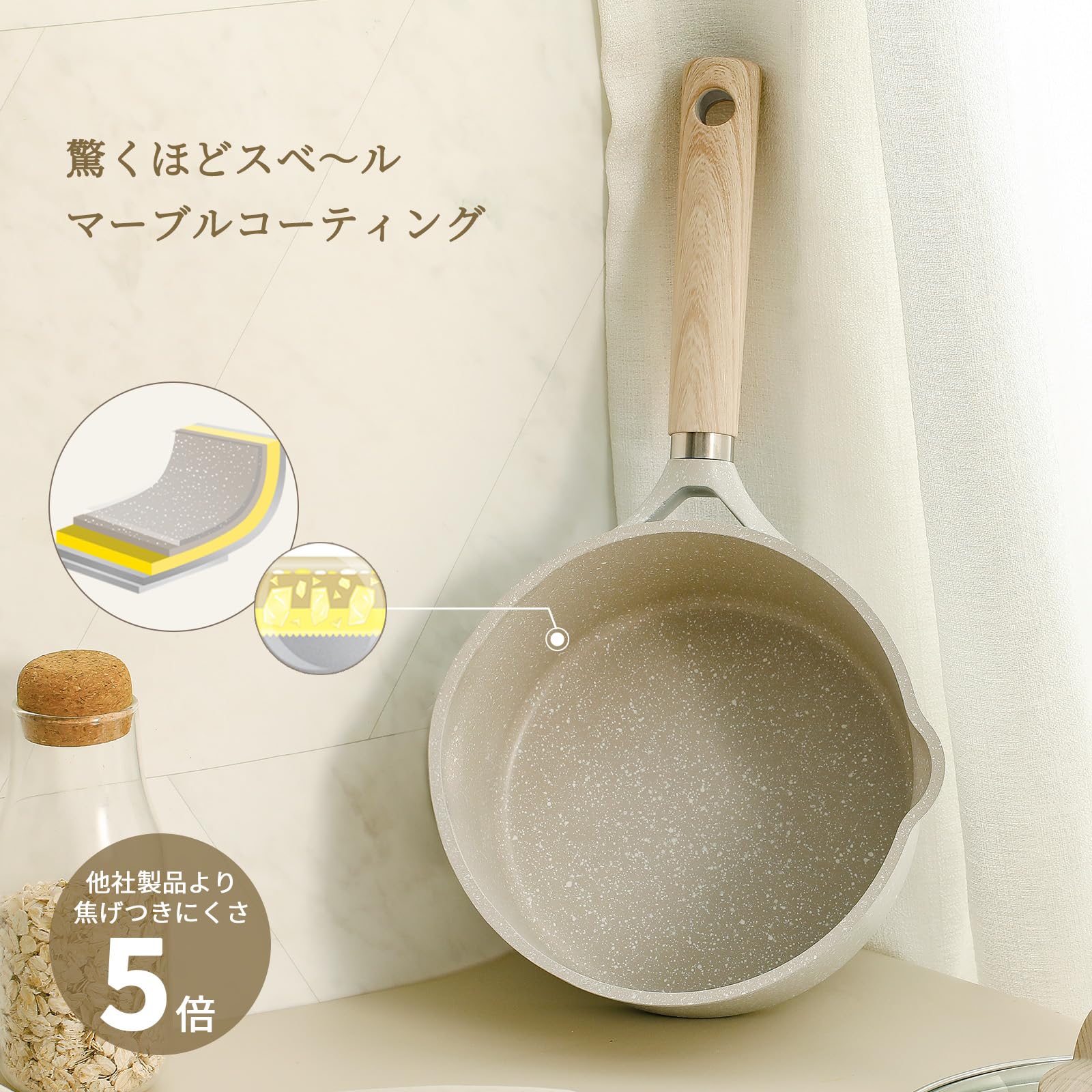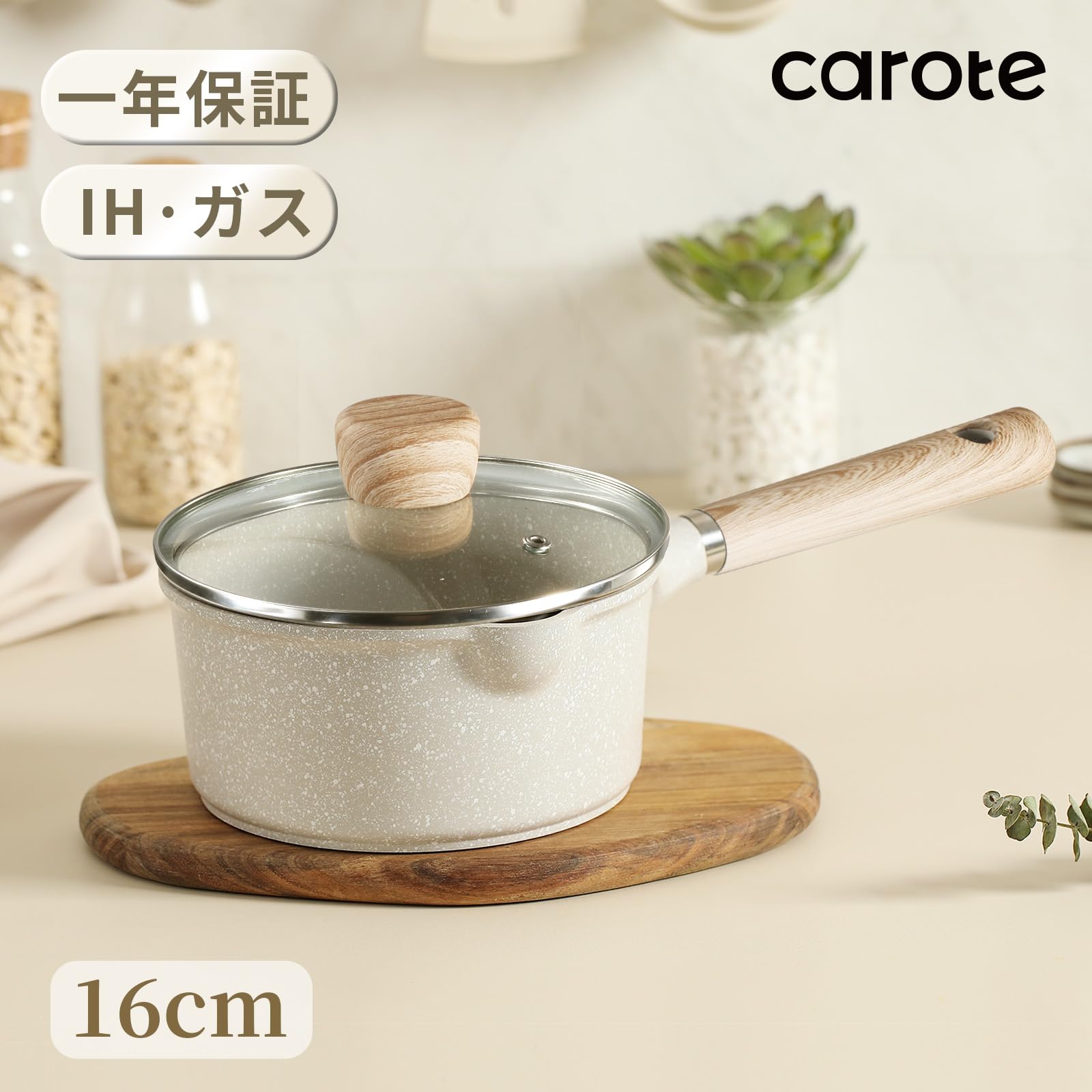 【特価在庫】CAROTE カローテ 片手鍋16cm 蓋付き IH対応 ミルクパン PFOA PFOS フリー マーブルコーティング くっつきにくく洗いやすい 一人鍋 揚げ物 一年 グレージュ COSY (16cm) | GIGATERA