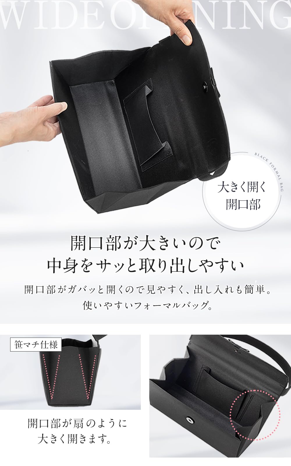 このフォーマルバッグは冠婚葬祭をはじめとするフォーマルな場面、入学式、卒業式、入園式、卒園式、結婚式、葬儀、お葬式やお宮参りなど、一つ持っておけば幅広いシーンで使えます。