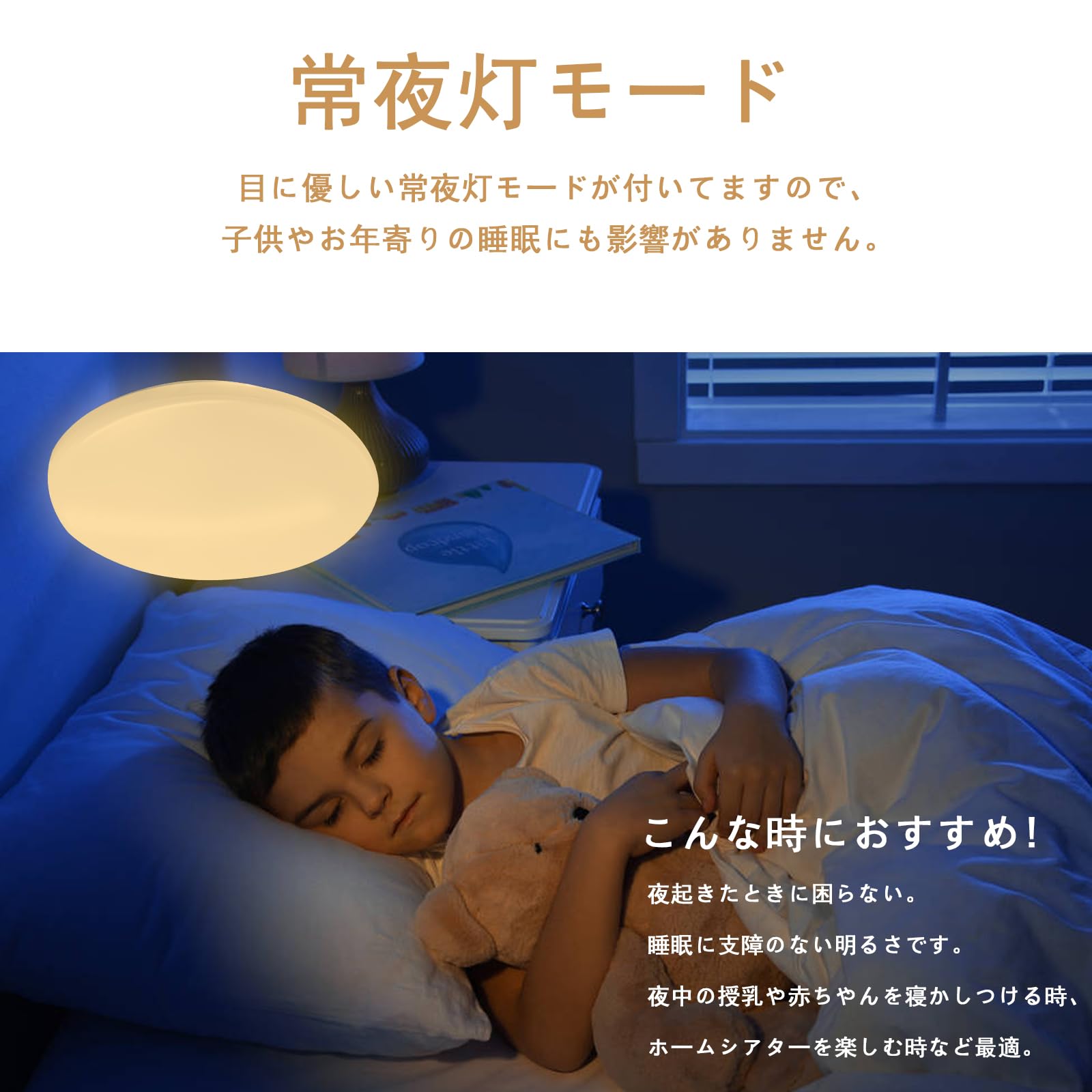 ?【常夜灯モード】: メインライト + バックライト 0.5W。 LEDシーリングライトにプロ仕様のスリープモードが追加され、リモコンで設定できるようになった。背面のナイトライトは、光が直接目に入るのを防ぎ、よりソフトな光を提供します。 常夜灯は、昼白色、電球色、昼光色からお選びいただけます。
