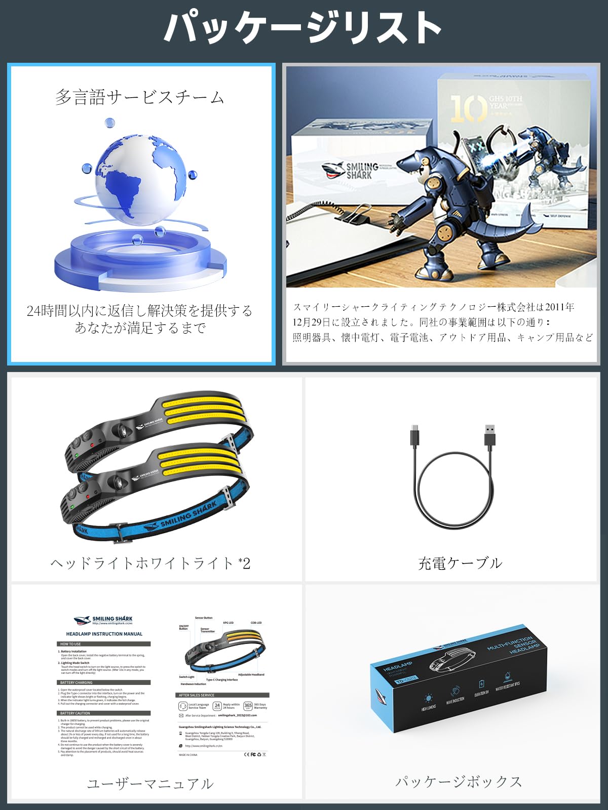 付属コンポーネント Light kit inlcuded, ヘッドバンド, 充電ケーブル