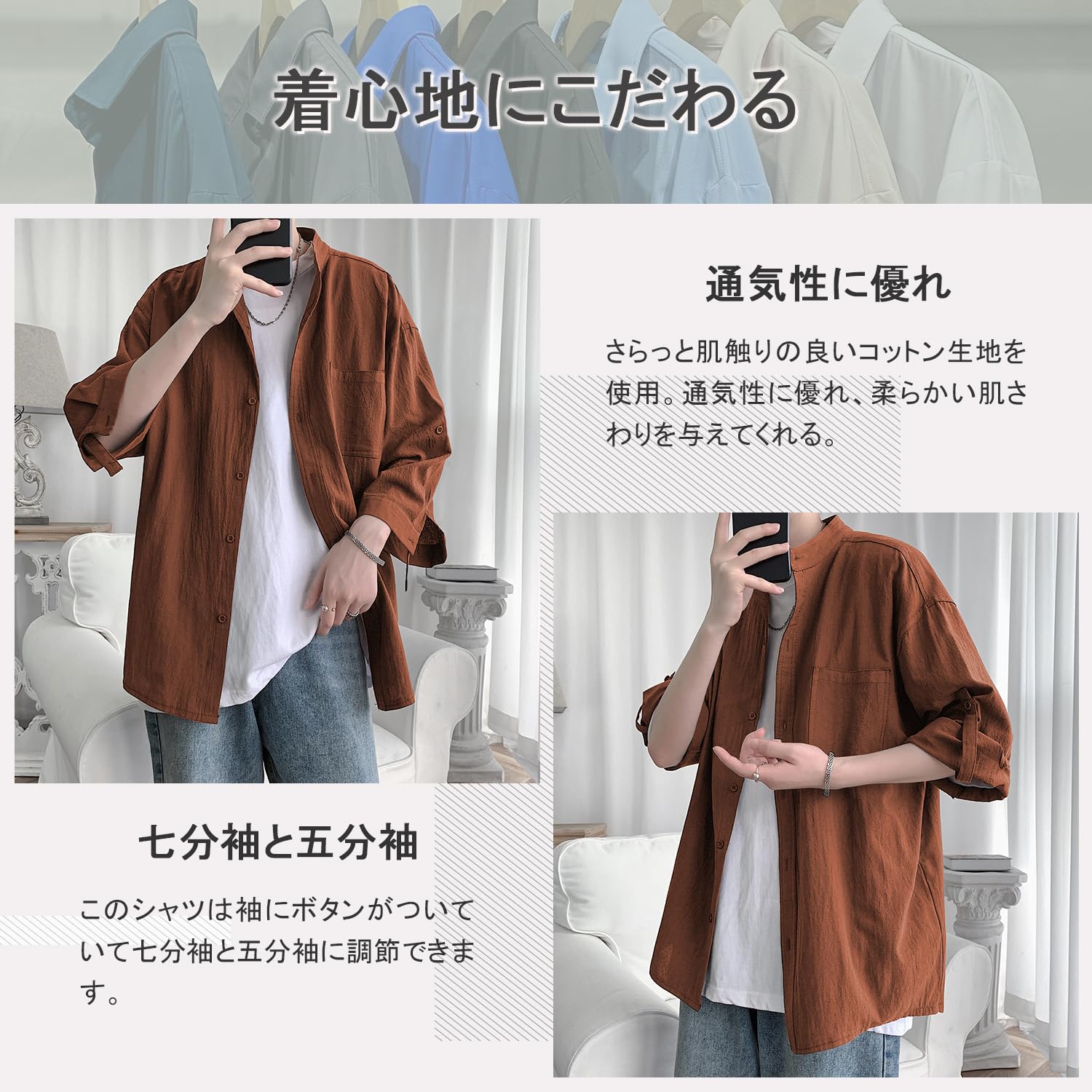 【特価在庫】[FLYSHION] シャツ メンズ 七分袖 折り返し 半袖 長袖 夏服 ファッション ボタンアップ シャツ 大きいサイズ メンズ 無地 柔らかい ワイシャツ カジュアル 春夏秋 人気 | GIGATERA