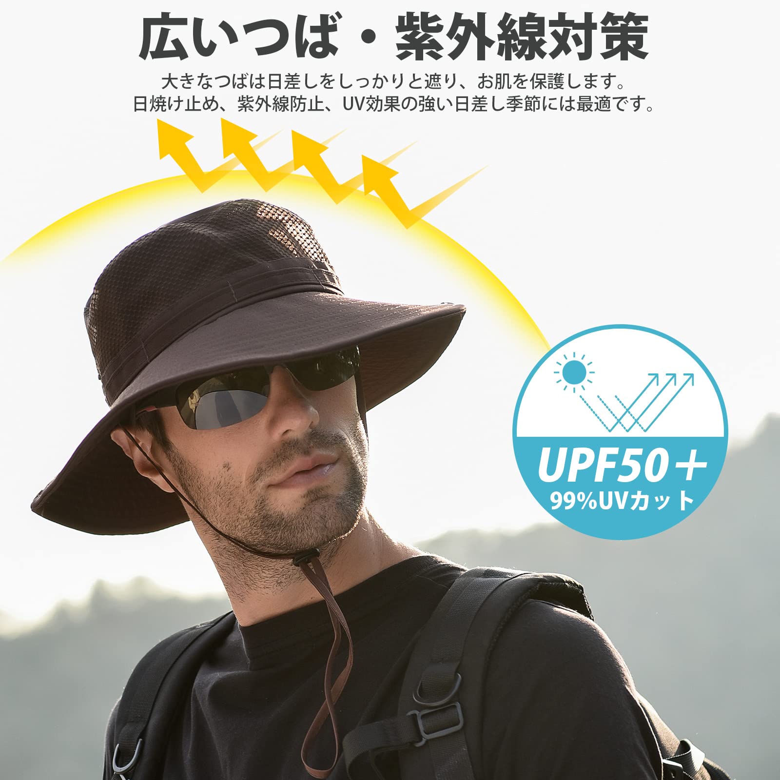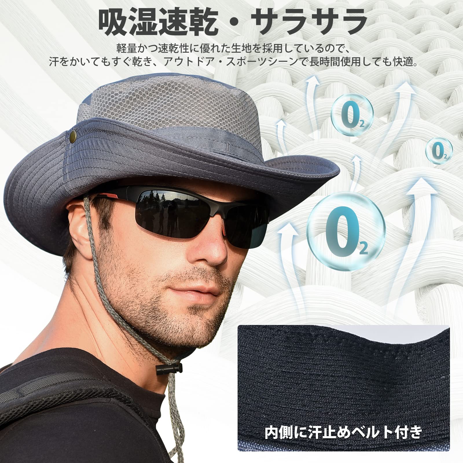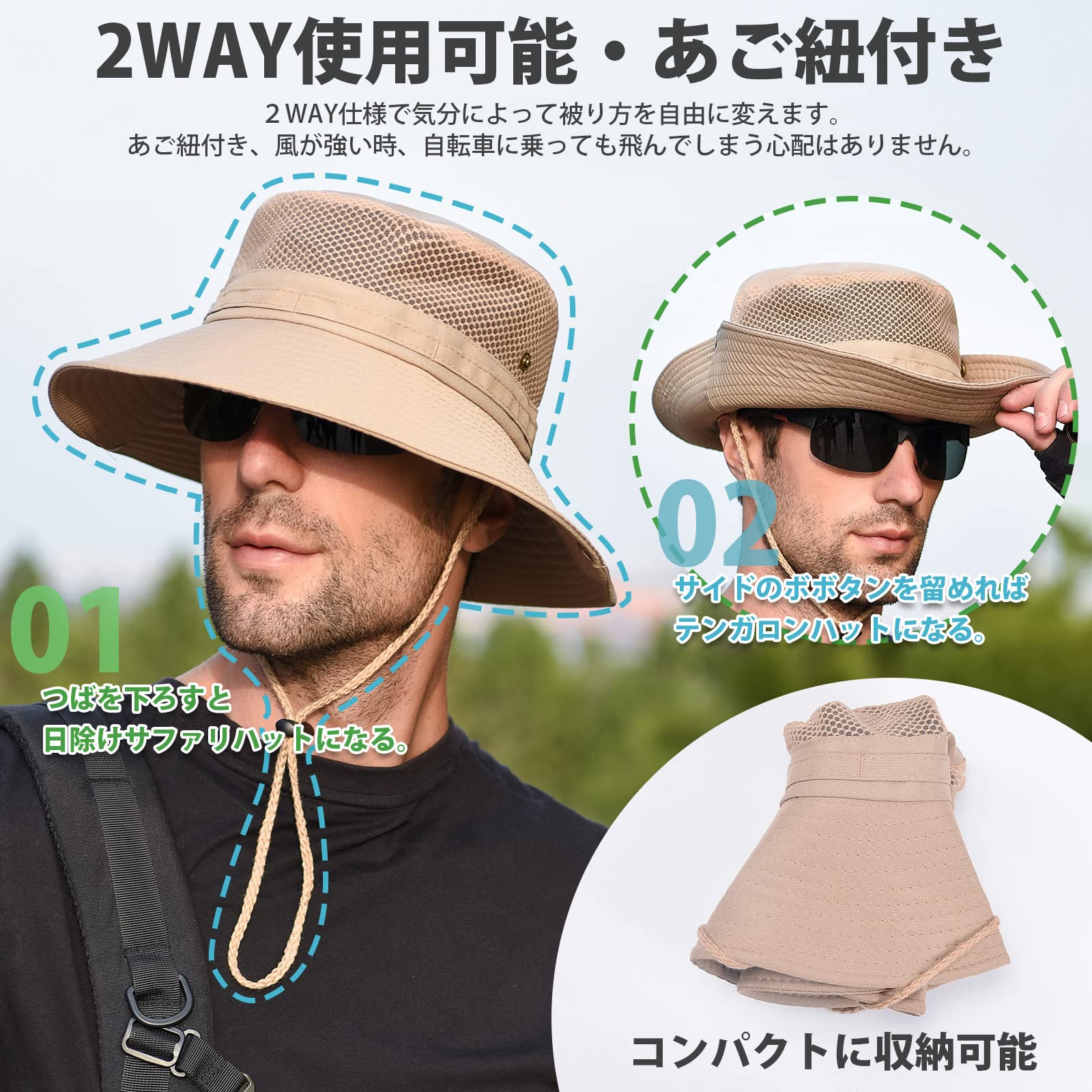 [KELEVO] サファリハット メンズ【メッシュ通気構造 折りたたみ UVカット】帽子 プレゼント つば広 日焼け 速乾性 軽量 防風 あごひも 2WAY おしゃれ 釣り 登山 ハイキング ゴルフ スポーツ ハット