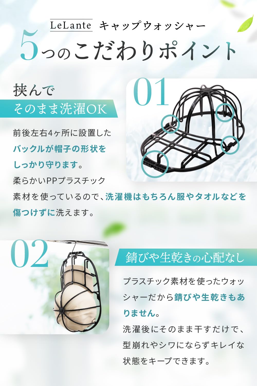 【こだわり】 様々なから キャップウォッシャー や 帽子 洗濯 が販売されていますが、LeLante キャップウォシャー は使いやすさが一味違います。10社以上の工場で1つ1つ比較を行い、1番優れた技術を持った工場でのみ製造を行っております。