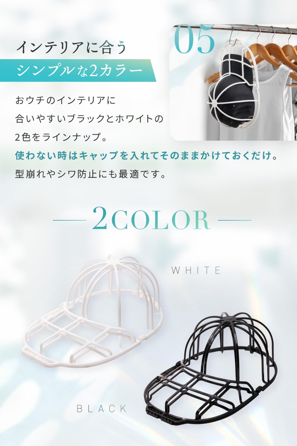 【対応機器】 洗濯機、食洗器、乾燥機にて使用可能。※乾燥機では80°以上の高温での使用はしないでください。ドラム式洗濯機での使用は推奨しません。事前に使用機器の詳細、洗濯する帽子のご確認をお願いいたします。
