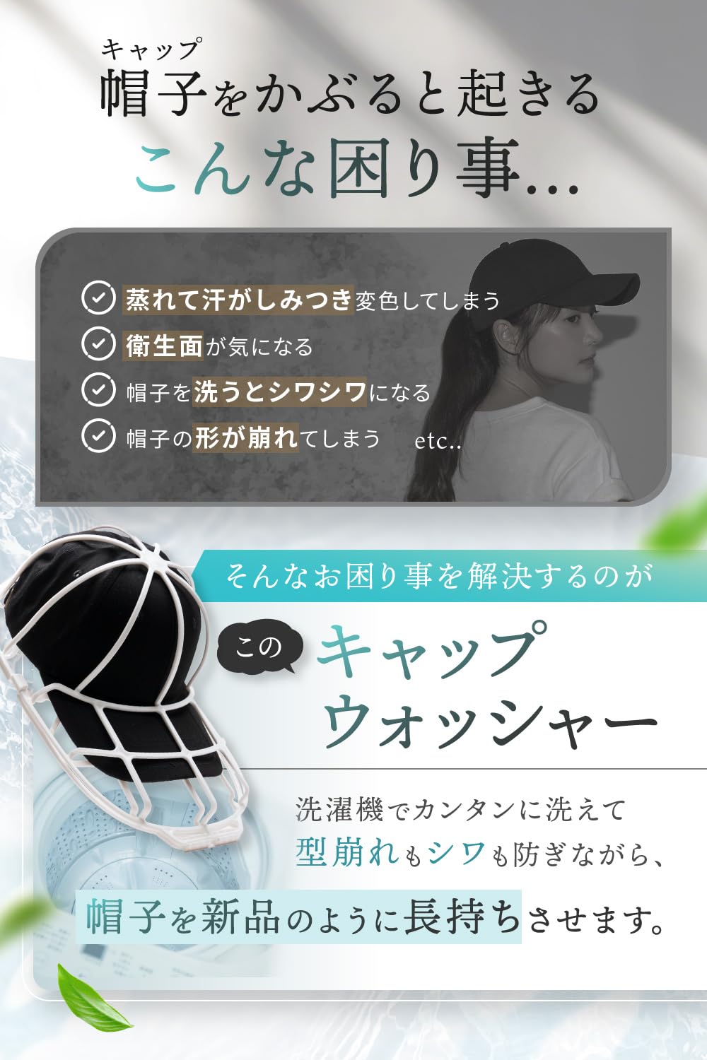 【選ばれる理由】 LeLante キャップウォッシャー がついに正式販売開始。帽子 についた汗で変色、帽子 のにおいが気になるけど洗い方がわからない...そんな方にピッタリ!スポーツなどをしてついてしまう汗や泥、ファンデーションなどの汚れをいつもの洗濯と一緒に入れるだけで簡単に落とすことができます。