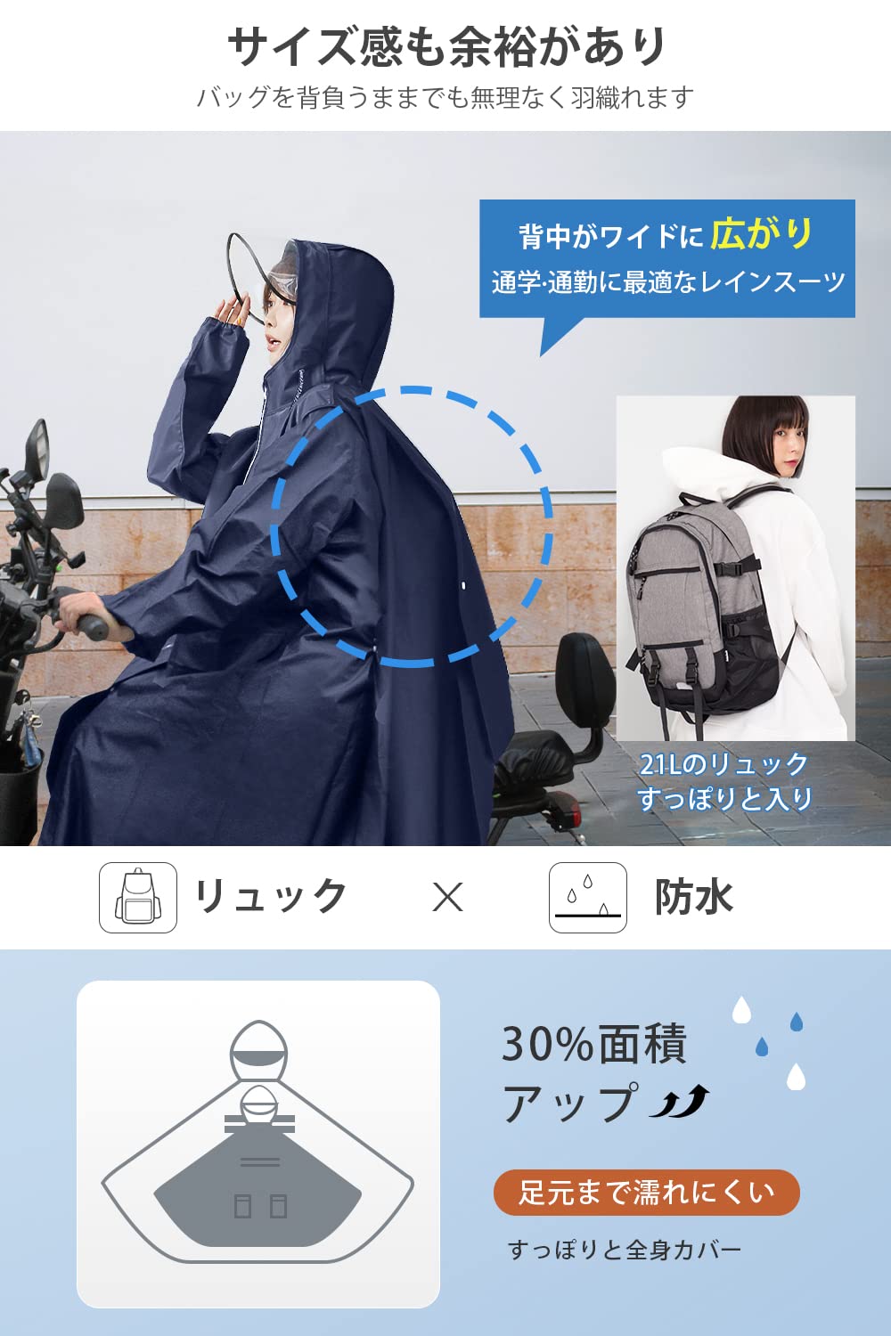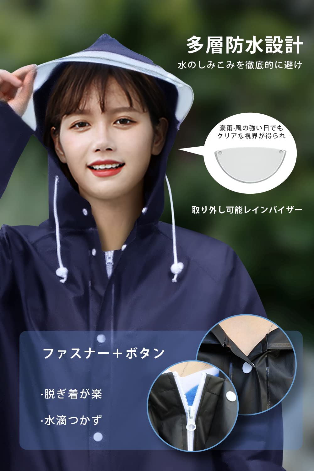 [Jerise] 【透明レインバイザー付き】 レインコート 大きいサイズ 男女兼用 リュック対応 超撥水 レインウェア バイク 自転車 雨合羽 レインポンチョ ロング 防水防風 メンズ 雨具 梅雨対策 豪雨対応 軽量 通勤通学 母の日 父の日 ギフト
