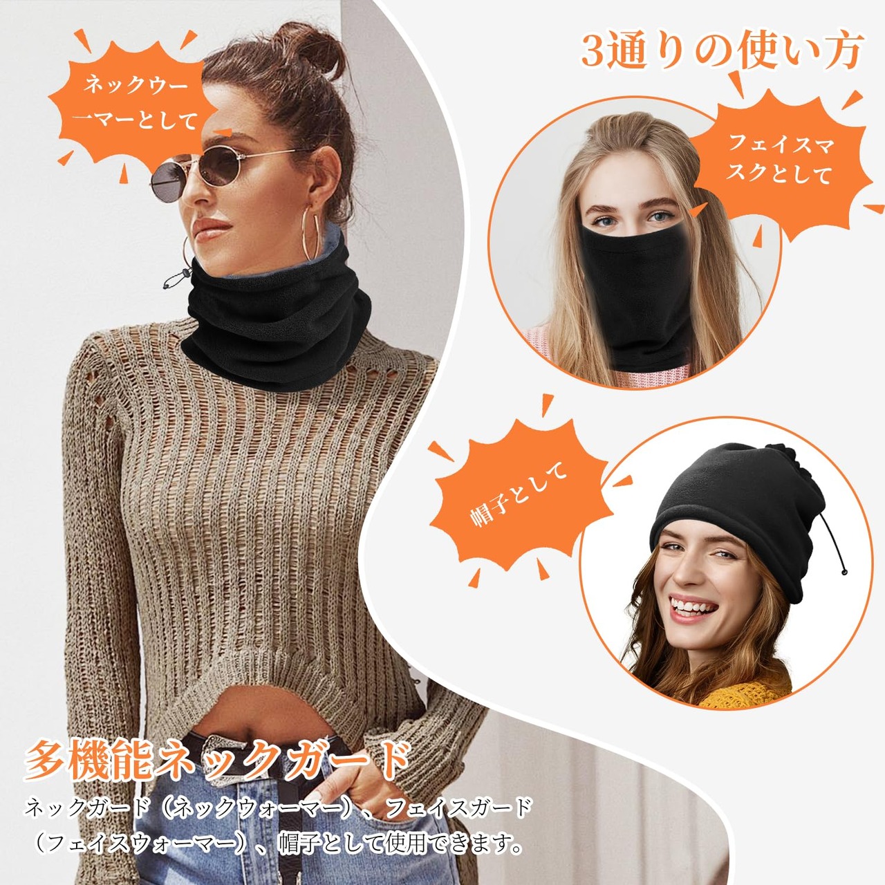 ??【多機能ネックガード・調節コードつき】サイズ: 縦26cm・横29cm。ネックガード(ネックウォーマー)、フェイスガード(フェイスウォーマー)、帽子として使用できます。シンプルなデザインで、いろいろな服に合わせやすくて、もっとファッション感を増やします。束縛がなくて、顔を締めつけません。調節コードがあるので、サイズを調整できて、運動する時に自由に動いてもずれる心配はありません。フリーサイズで男女問わずに装着できます。おしゃれな着こなしに日常の装飾を組み合わせると、寒い冬はあなたの魅力を阻むことができません。