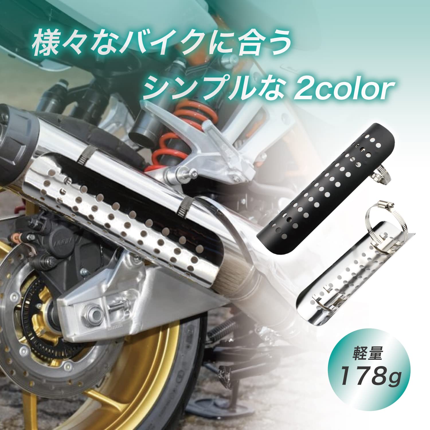 高品質のスチール製で熱に強く、耐久性、防錆性、防腐性に優れています。排熱で熱くなったマフラーやエキゾーストパイプをカバーし、火傷や衣類の焦げを防止します。また、ヒートシールドの役割だけでなく、本体の傷防止にも役立ちます。