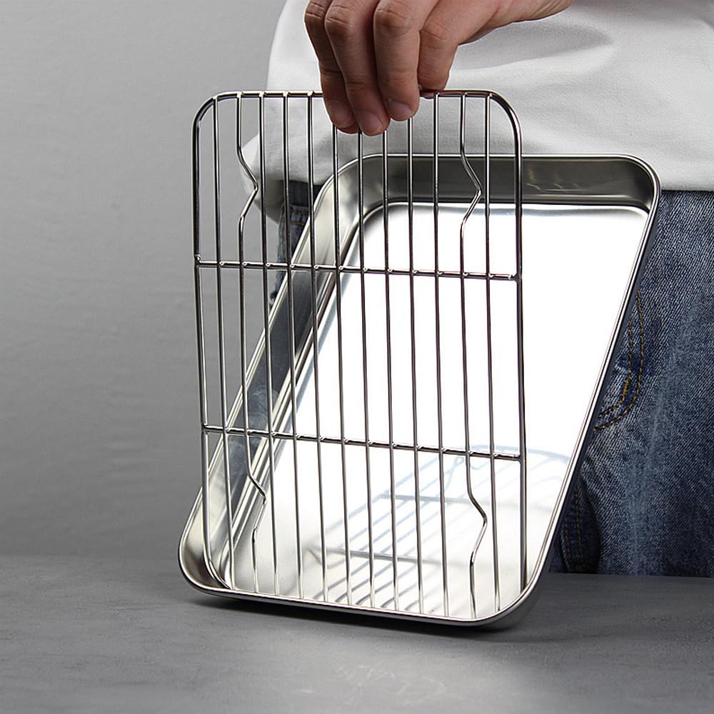 Dovejaバットセット18-8ステンレス 揚げ物 4点 バット 天ぷらバット トレー クッキングバット アミ付き 下ごしらえ 調理用バット (3)