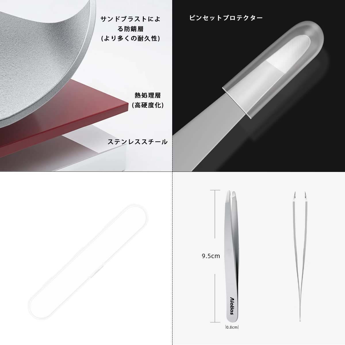 セット内容:先丸めで精密毛抜き*1本、プラスチック収納ボックス*1個。精密ピンセットは40段階の仕上げ工程を経て、顕微鏡で最終テストを行い、ピンセットの先端が完全に揃っていることを確認しています。