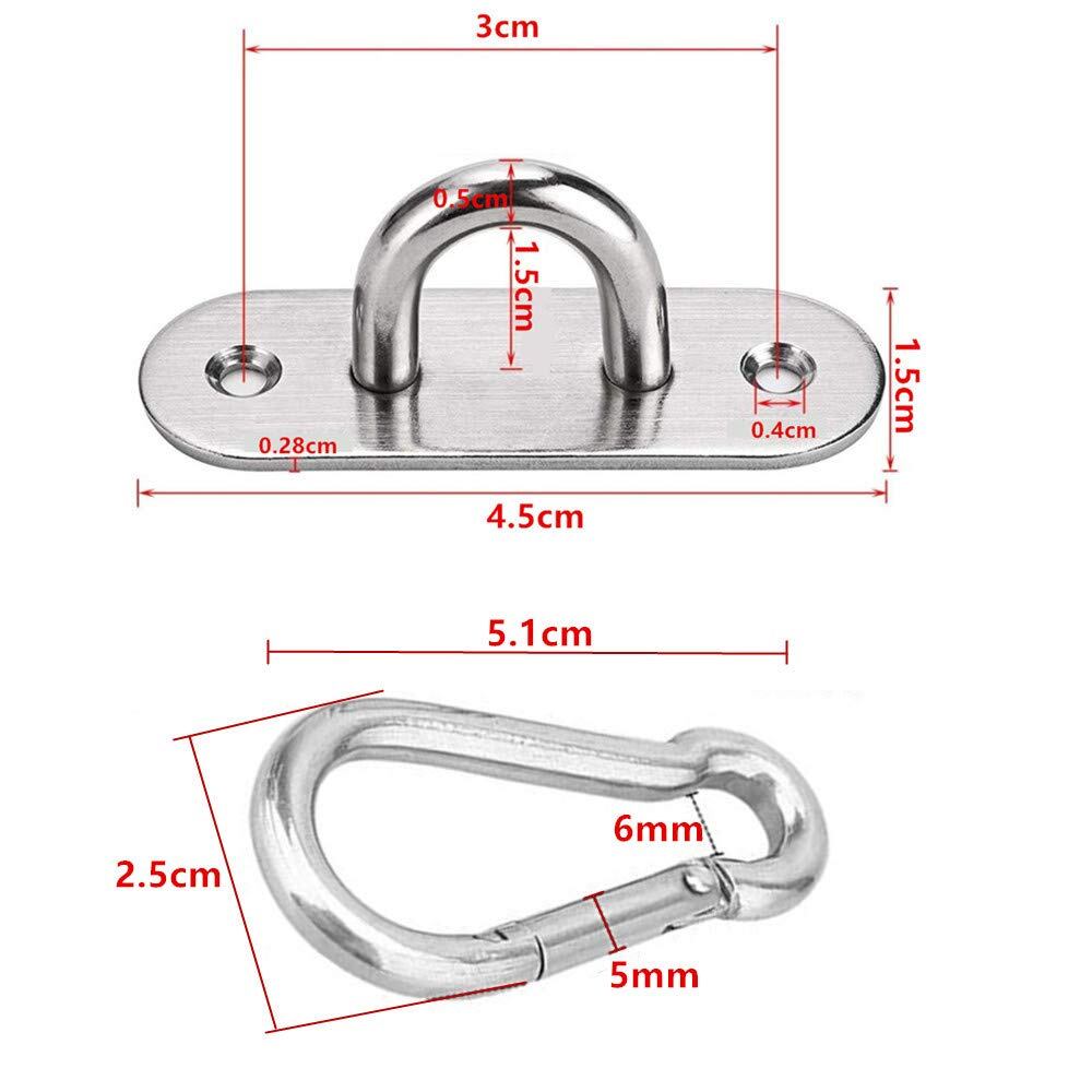 サムコス パッドアイ 長方形アイプレート 45mmx15mm ステンレスループ 304ステンレス鋼 カラビナ 耐腐食性 固定 止め 金具 高強度 丈夫 (パッドアイ4個+カラビナ4個+マッチングネジ)