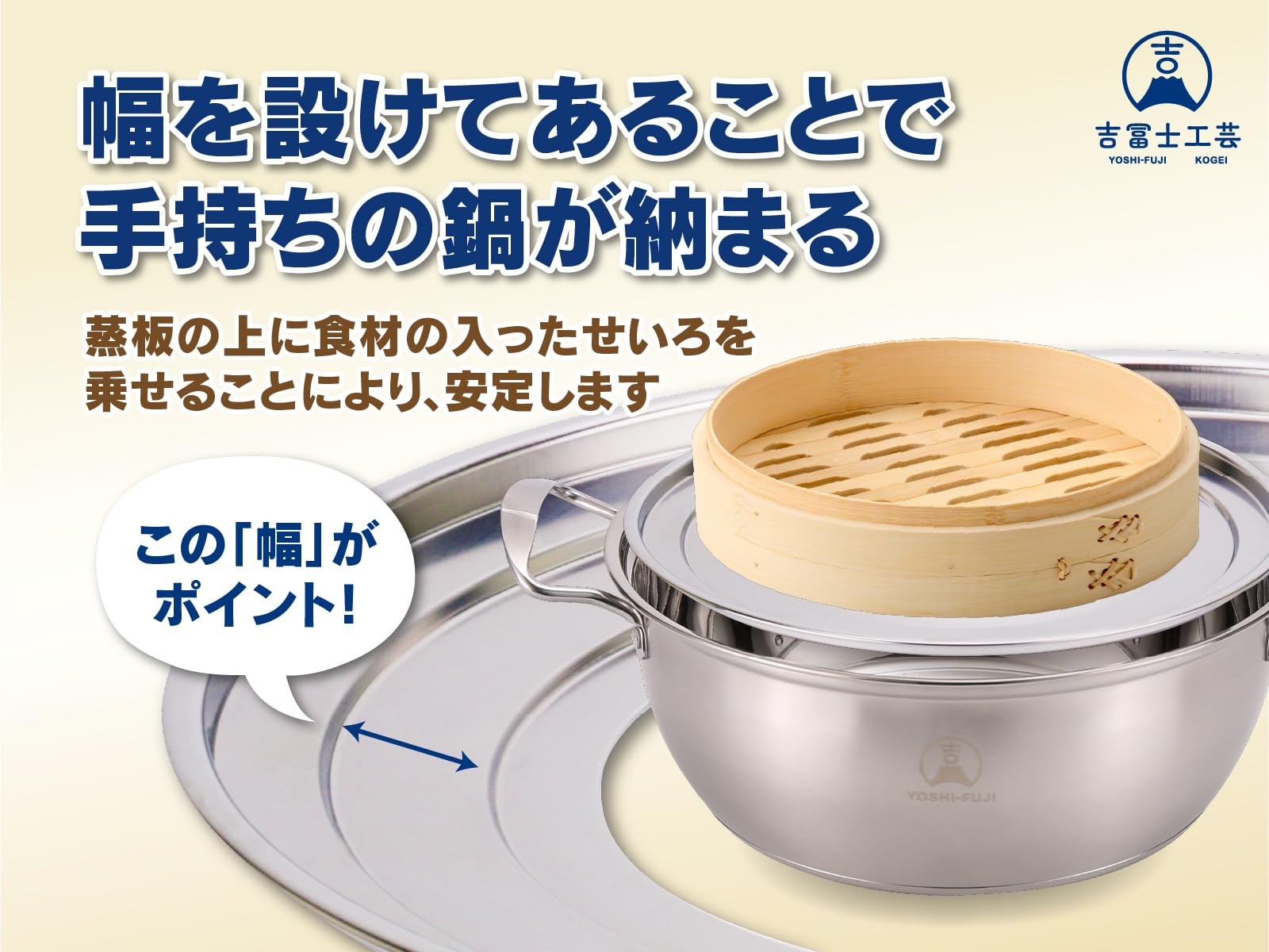 ◆ステンレス製せいろ専用用蒸板)は、直径24cmでIH調理器に対応し、15cm、18cm、21cm、24cmサイズのせいろにも対応しています。