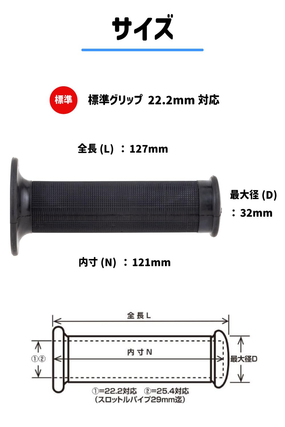 ●スロットル側にすべり止めを付け、クラシカルなスタイルを強調しました。標準サイズ用、左右SET。