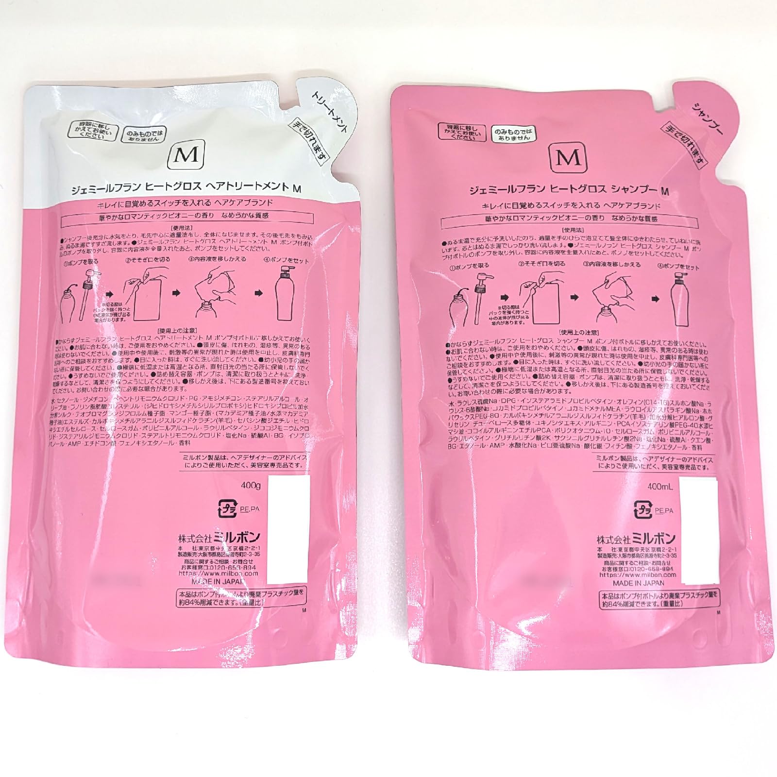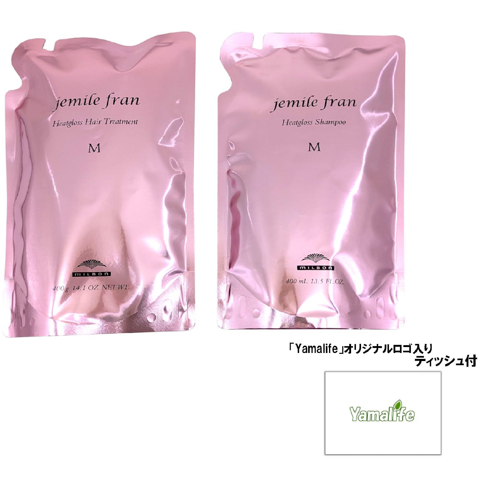 【まとめ買い】ミルボン ジェミールフラン ヒートグロス M シャンプー400ml トリートメント400g 詰め替え セット 【Yamalifeオリジナルテッシュ付】
