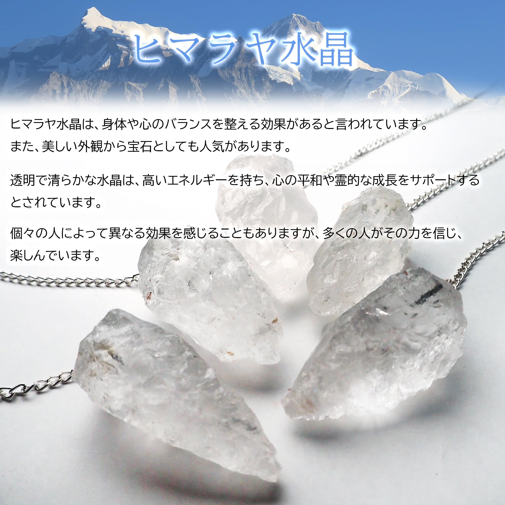 ?【ヒマラヤ産水晶】ヒマラヤ水晶は、身体や心のバランスを整えると言われています。また、美しい外観から宝石としても人気があります。透明で清らかな水晶は、高いエネルギーを持ち、心の平和や霊的な成長をサポートするとされています。個々の人によって異なる効果を感じることもありますが、多くの人がその力を信じ、楽しんでいます。