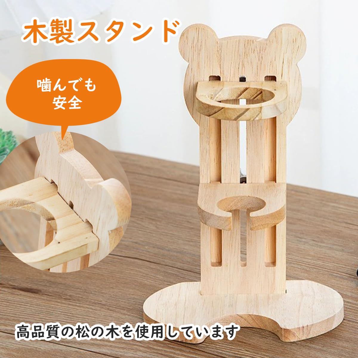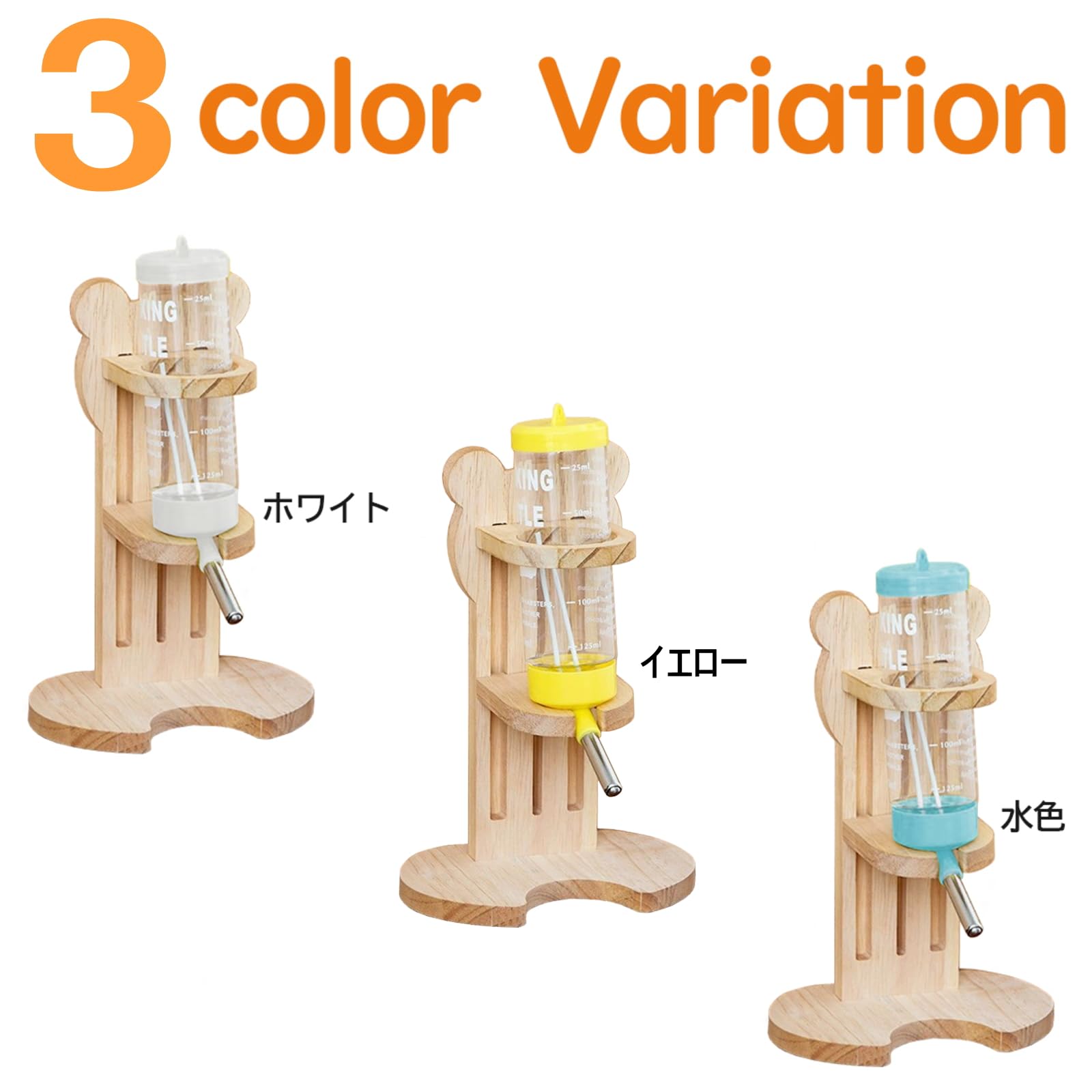 ??スタンド式の水入れ:スタンド式でしっかりと固定できるので、水をこぼしてしまう心配もありません。 ??松の木を使用:高品質な松の木を使用しているので、木かじりが大好きなハムスターにもぴったりです。 ??組み立ても簡単:スタント後ろのネジを固定するだけで簡単に組み立てができます。面倒な組み立てが無いので、どんな方にもお使い頂けます。 ??ぴったりなサイズ:ハムスターやチンチラ、ウサギなどにぴったりな80mlの容量。スタンドは、高さ19×幅12×奥行7.8cmなので、安定案があり使いやすいサイズです。 ??4種類のカラーから選べます。:カラーはホワイト、ブルー、オレンジからお選び頂けます。ぜひペットちゃんのカラーに合わせて、お選び下さい。