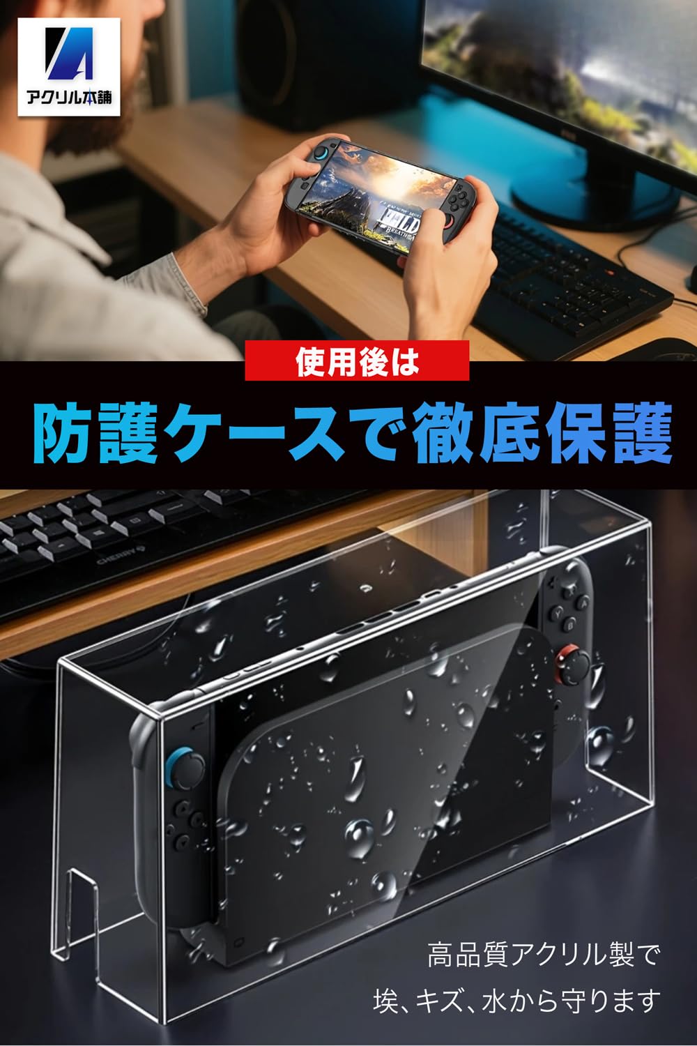 【被せるだけ】アクリル本舗 Switch2 ドック用 スイッチカバー アクリルケース スイッチ 保管 ドックカバー 防水 (クリア, Switch2用)