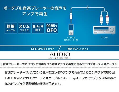■ 音楽プレーヤーやパソコンの音声をコンポやアンプで再生できるコンパクトで取り回しがしやすいアナログオーディオケーブルです。
