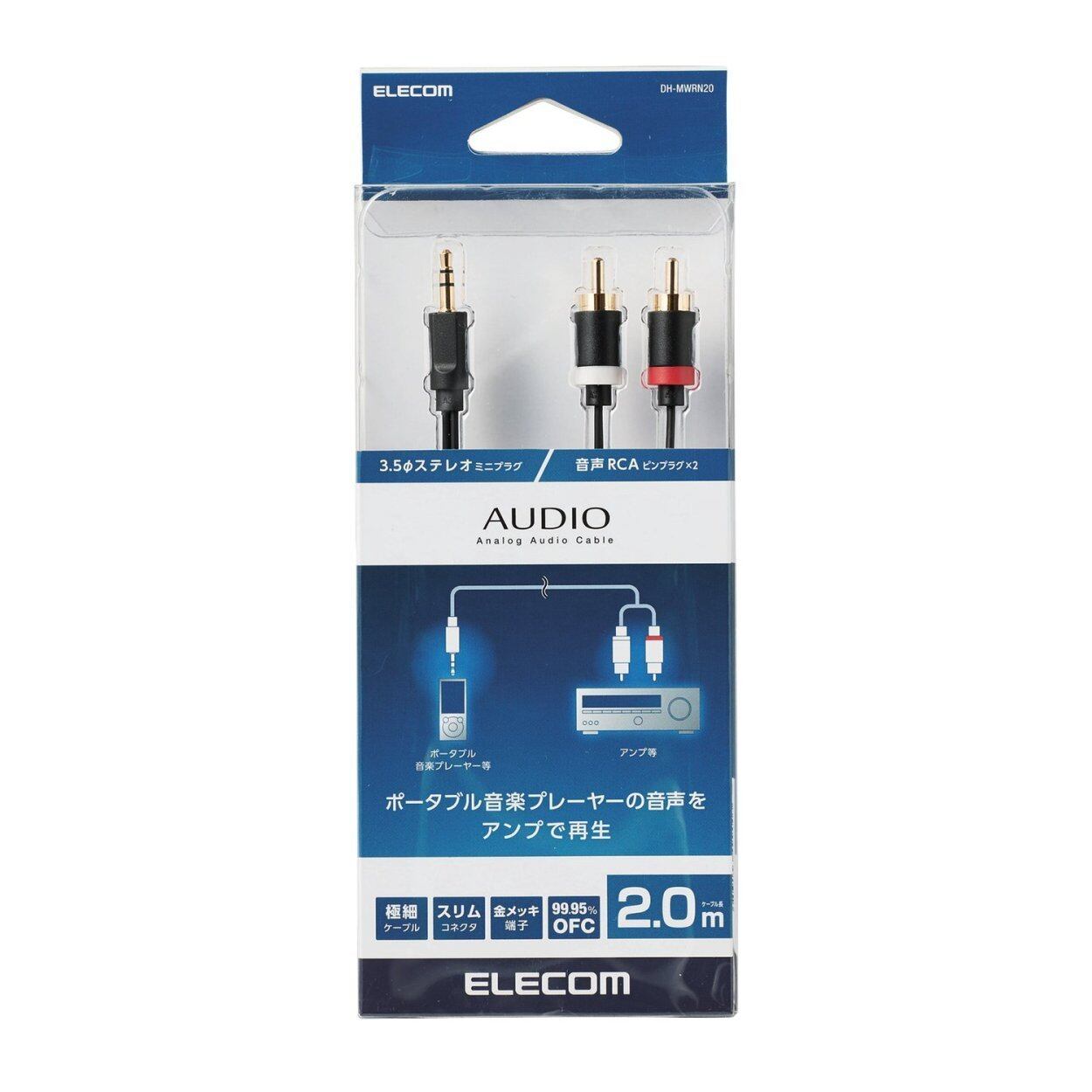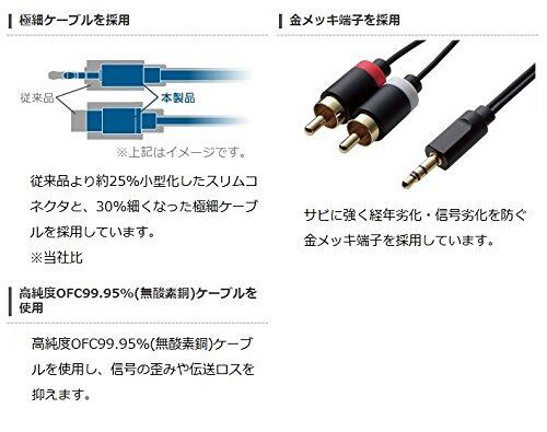 エレコム オーディオケーブル ステレオミニ-ピンプラグ(L-R) 極細/金メッキ ブラック 2m DH-MWRN20