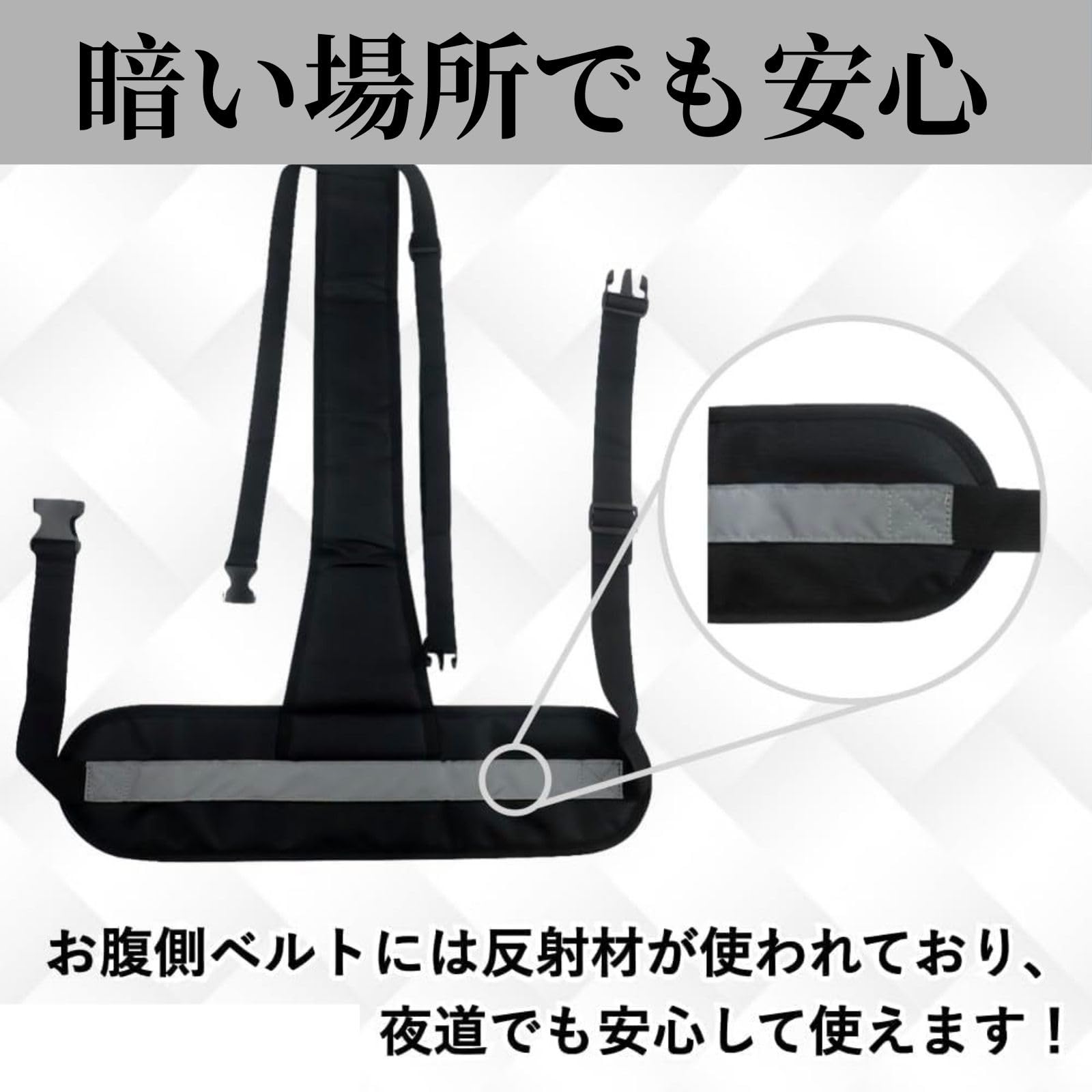 【暗い場所でも安心】お腹パッドの前側には反射材が使われており、夜道でも安心して使用できます。