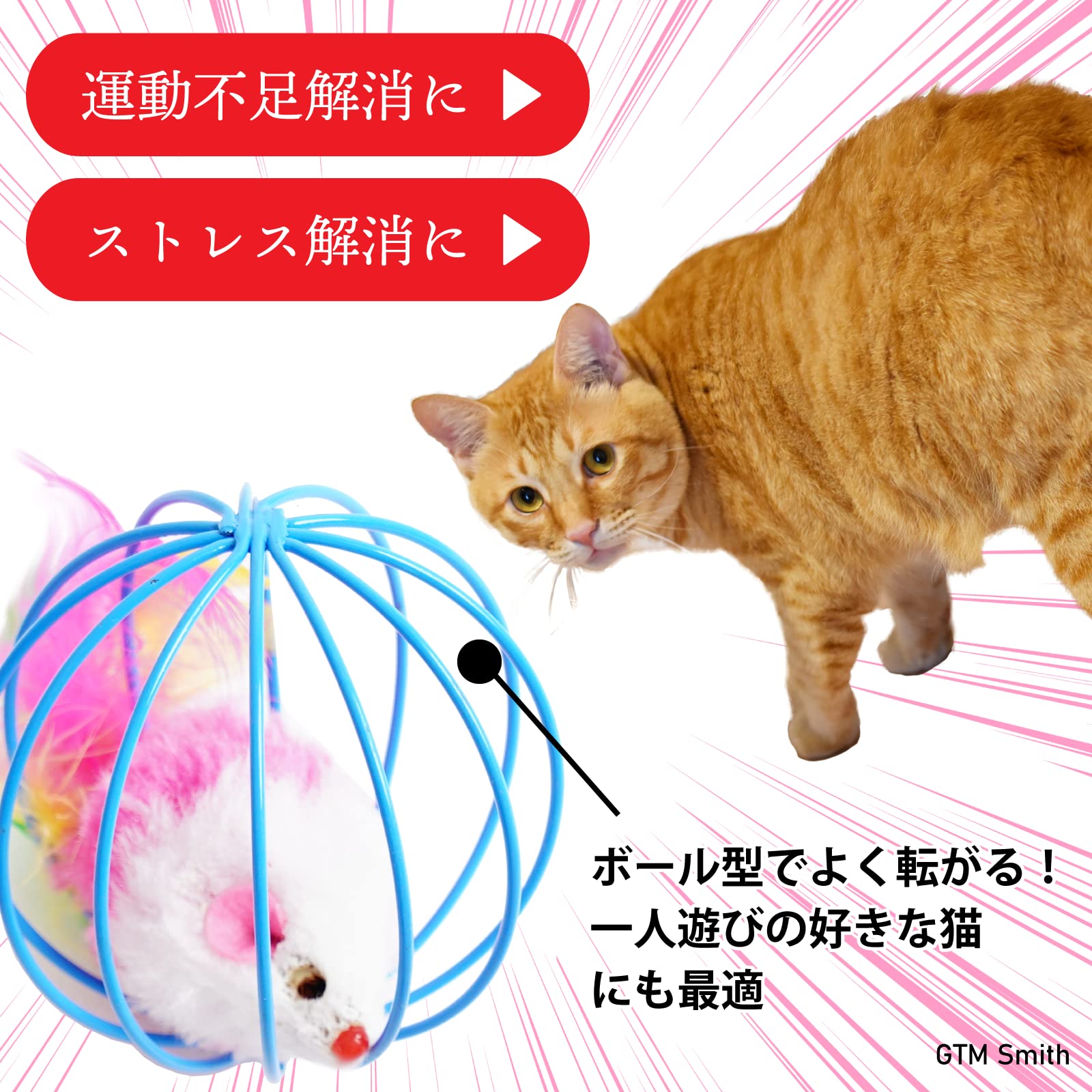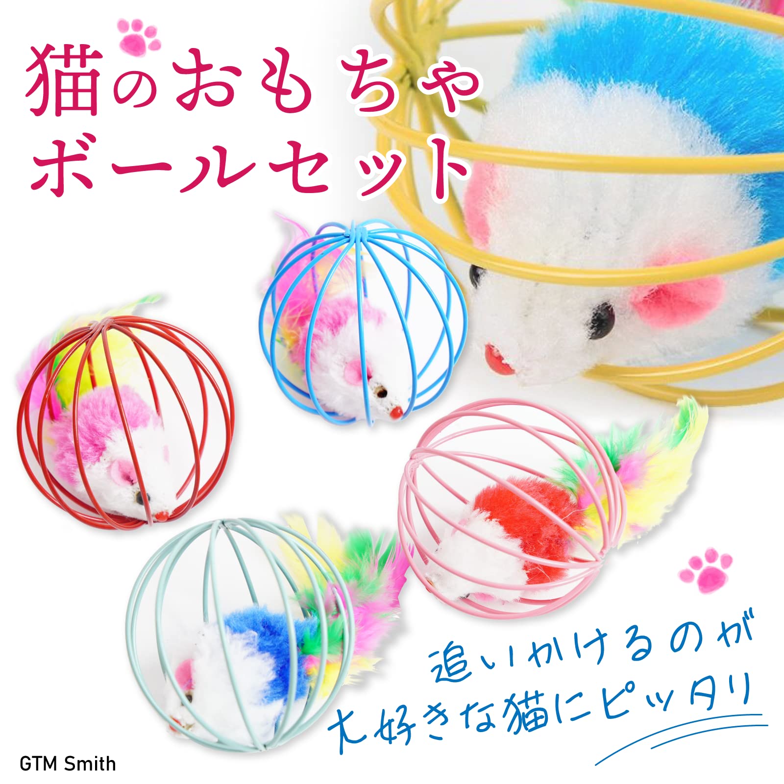 GTM Smith 猫 おもちゃ ネズミ ボール 猫のおもちゃ 羽 ねこ ネコ 玩具 オモチャ ねずみ 羽付き 羽根 4個