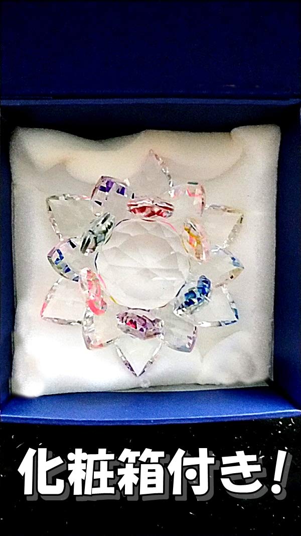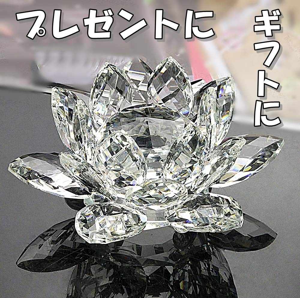 ?クリスタルガラス製。光の加減できらきらと輝きとても美しい蓮の花のインテリアオブジェです。透明度が高く、高級感があります。大切な人へのギフト・プレゼントとしても最適です。