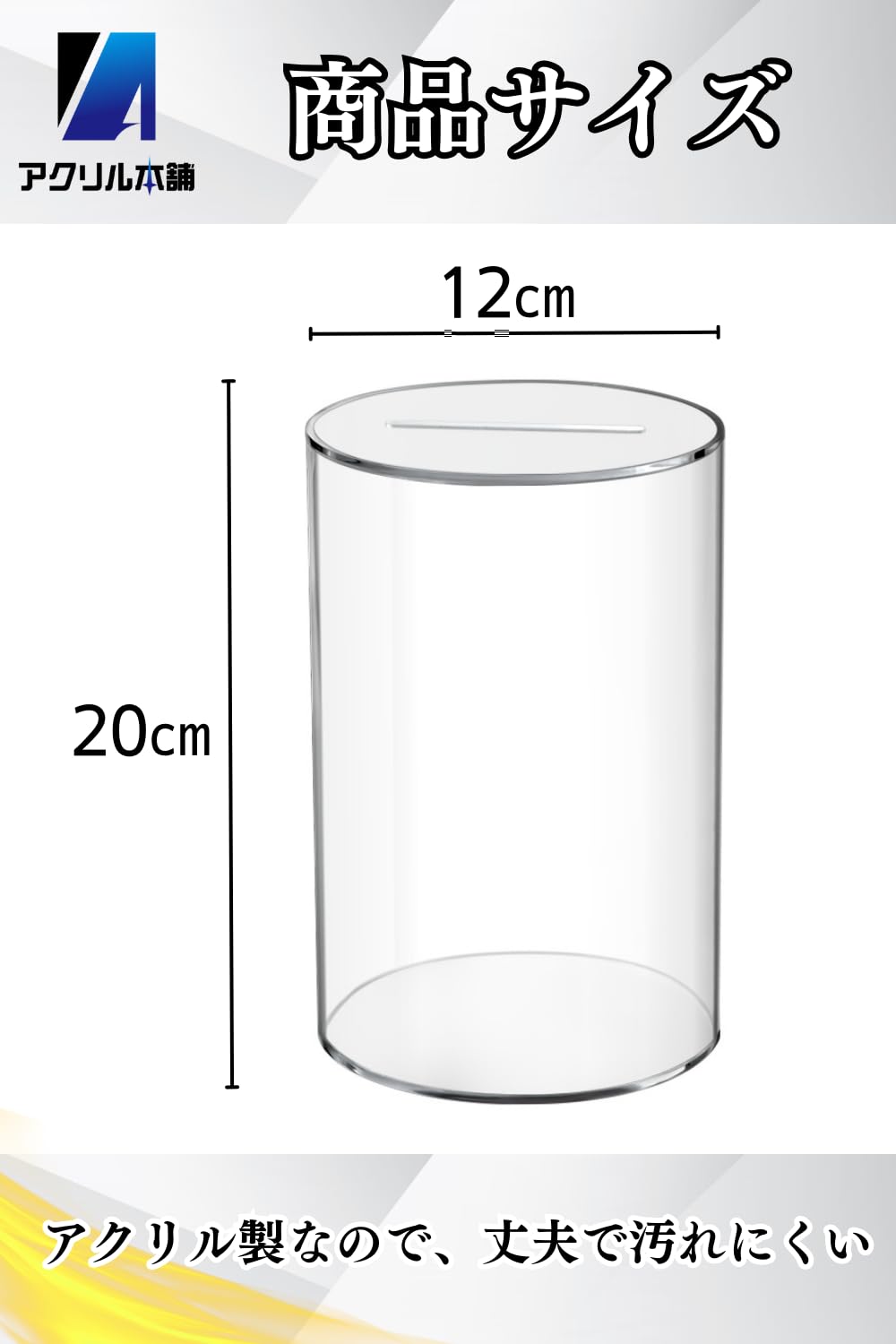 アクリル本舗 開かない 貯金箱 札 100万円貯金 筒型 透明 500円玉貯金箱 おしゃれ 賽銭箱 (円柱×直径12㎝, クリア)