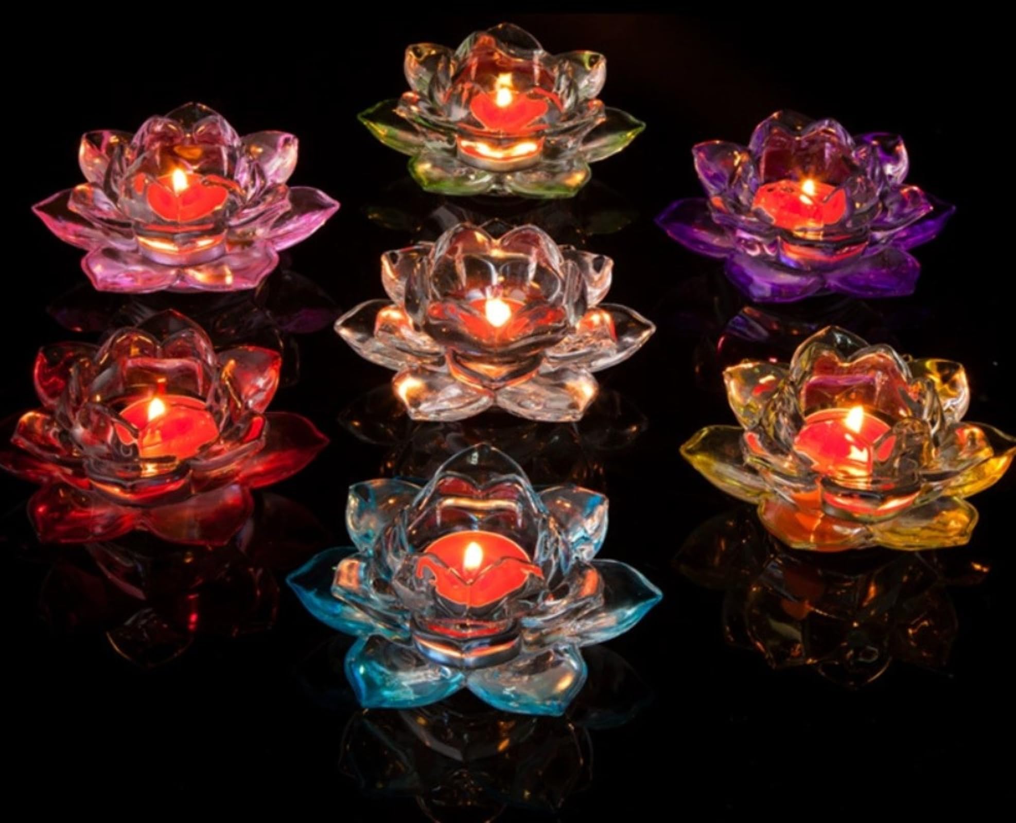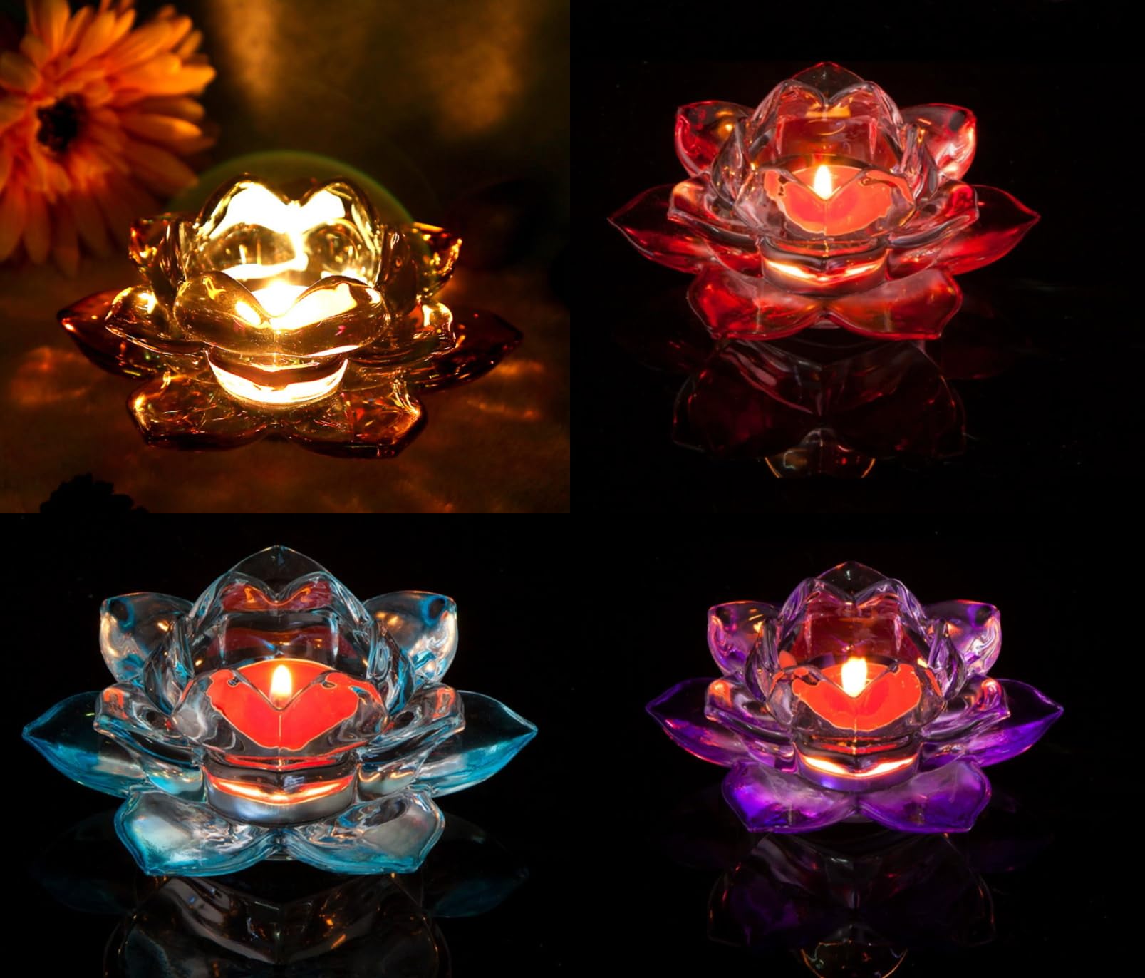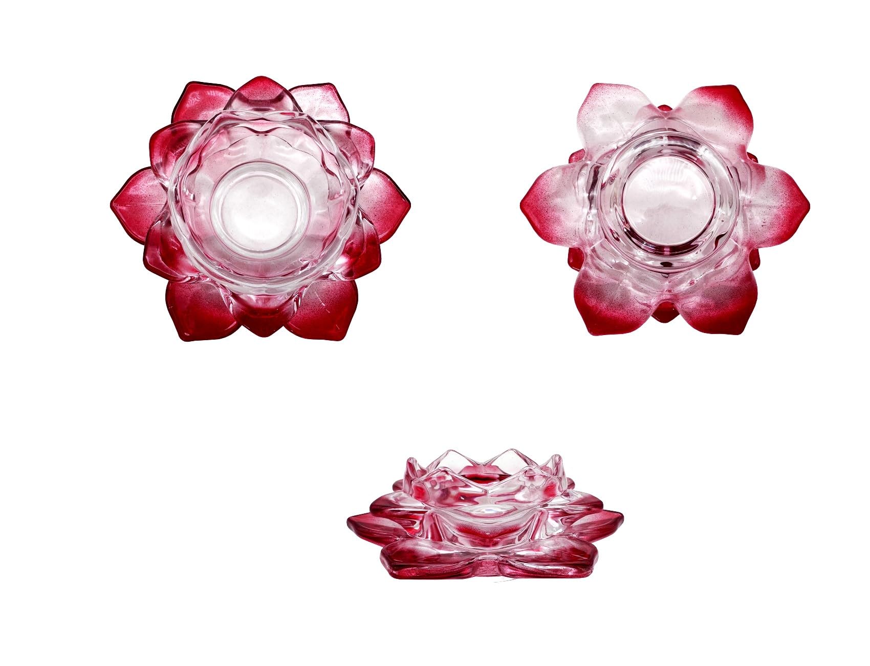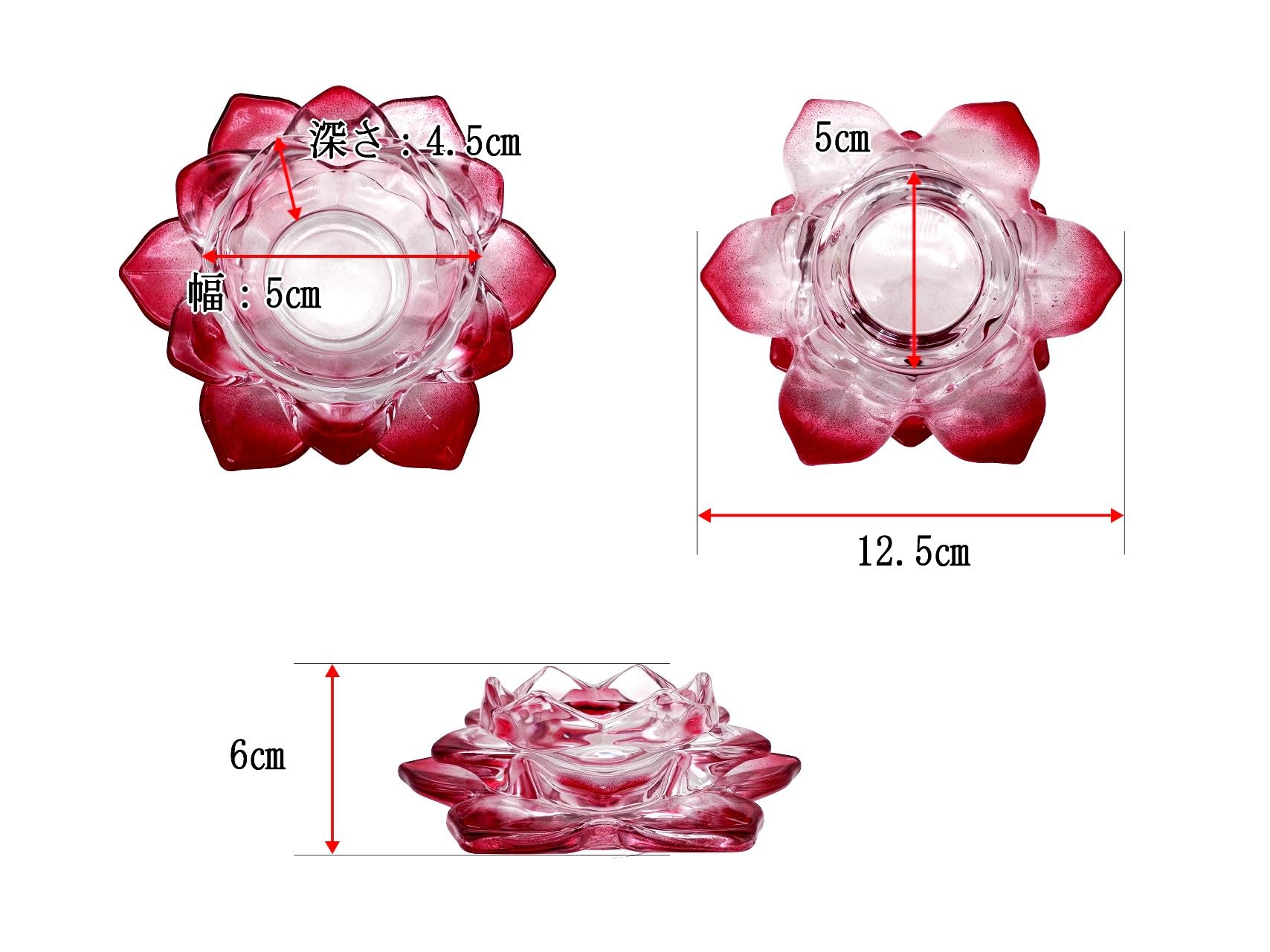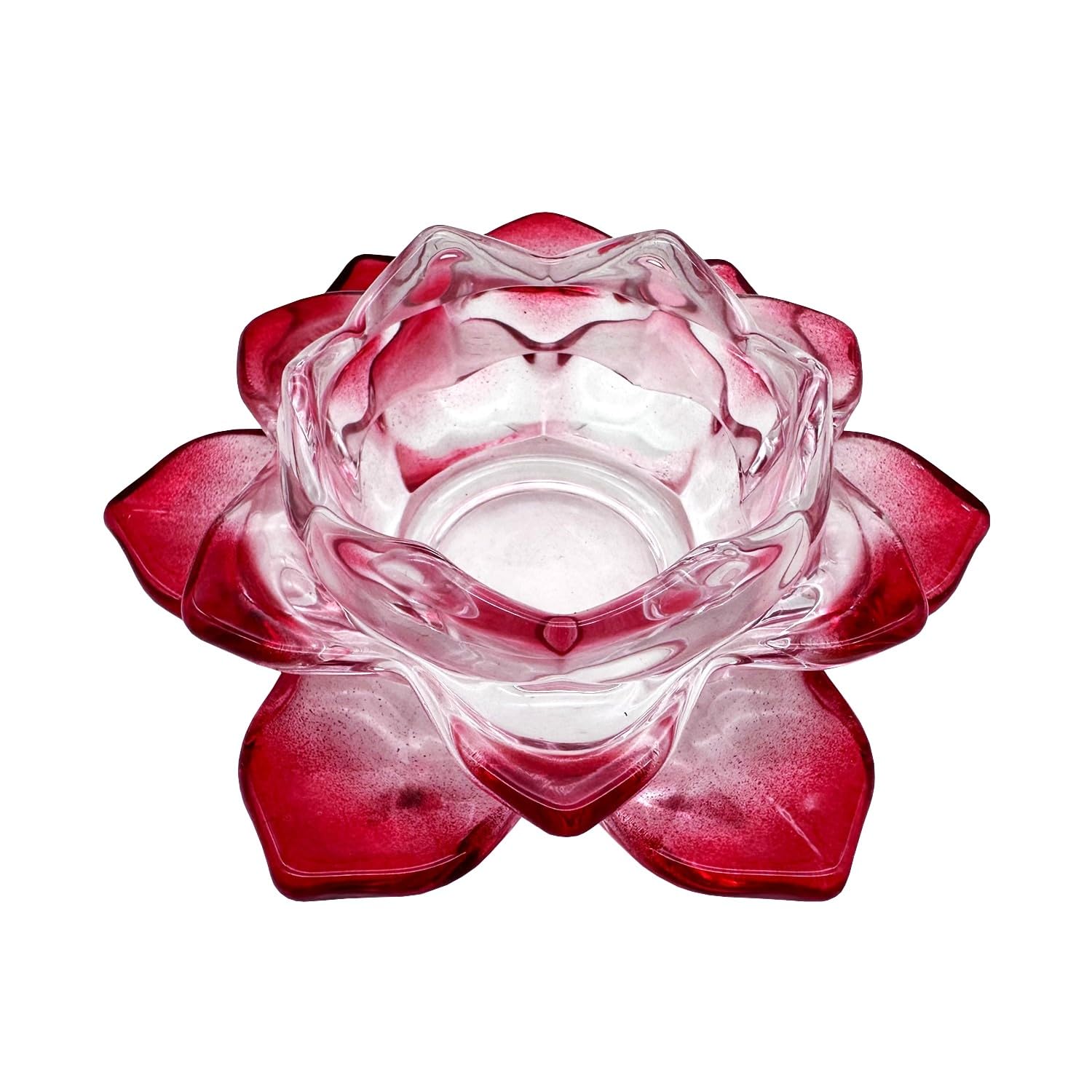 キャンドルスタンド 蓮の花 ガラス製 クリスタル カラー キャンドルホルダー 燭台 ろうそく立て (赤)