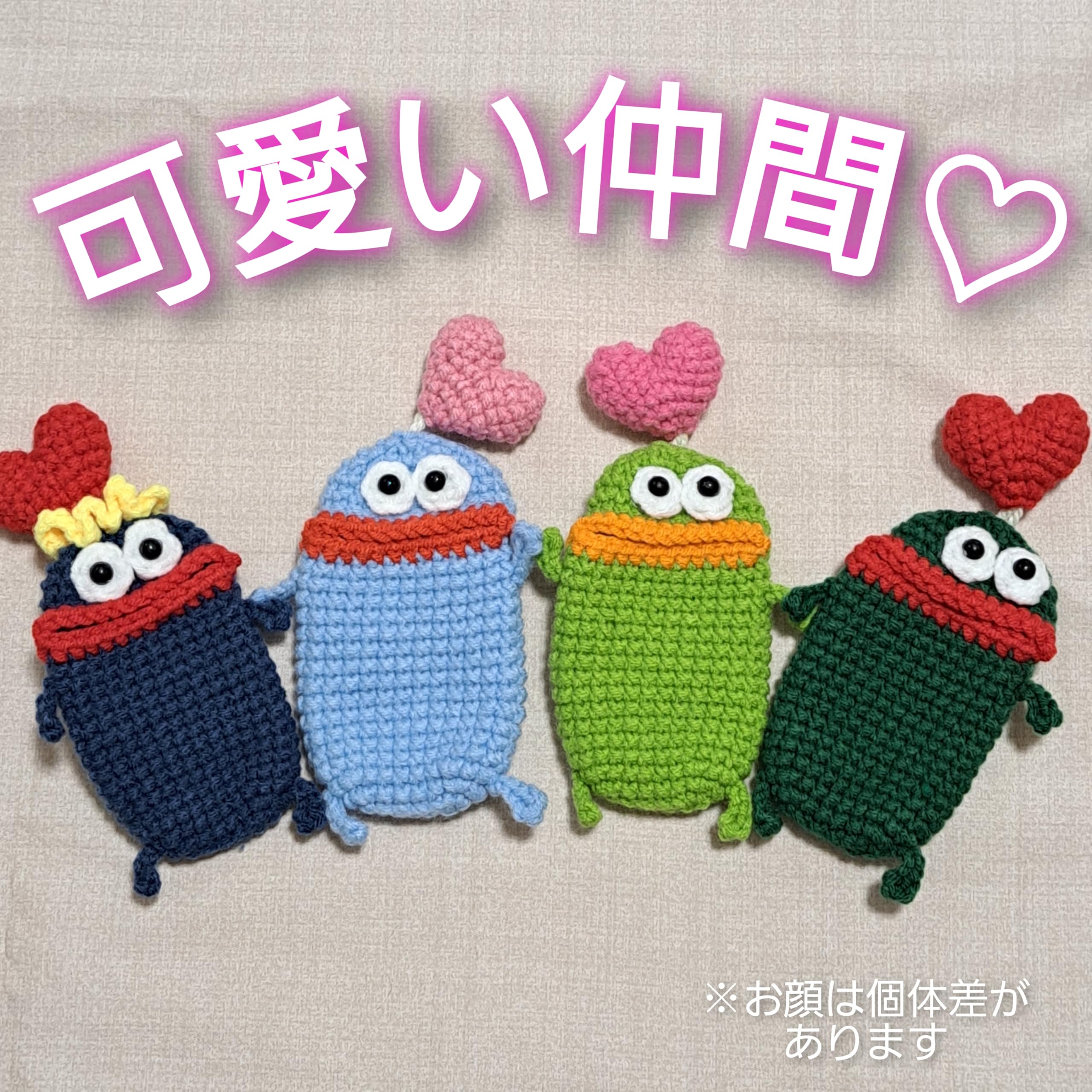 【可愛い表情】心くすぐられ、思わずニッコリ微笑心くすぐられ、思わずニッコリ微笑んでしまうキーケース。紐にカギを通してハートを引っ張ると、舌を出しているように見える愛らしさ。 使わない時は口の中にカギを収納してくださいね。 【サイズ】縦約13cm(体10cm、??3cm)横約6cm。1cm程度の個体差があります。小さな鍵なら複数個まとめて付けることもでき、車のカギもすっぽり入るサイズ感です。 【個体差】毛糸のマスコットシリーズは手作りのため、一つひとつ表情が異なるユニークさも魅力です。 バッグの中でも見失う心配なし。キズ防止にも適しています。 【プレゼント】鍵をぱっくっと食べちゃう可愛いモンスターをぜひあなたの元へも迎えてください。友達や恋人、親子でのお揃いもオススメです。プレゼントにも喜ばれること間違いなしです。 【注意】お客様おモニター環境などによって色味が若干異なる場合がございます。多少の個体差がございますが初期不良ではございません。入荷時期によって色味、デザインが多少異なる場合がございます。